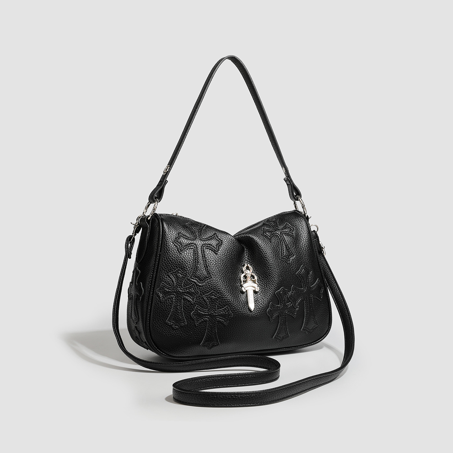 2025新款宝剑刺绣贴皮十字架鸡块包hobo包真皮单肩腋下包女虞书欣