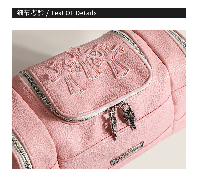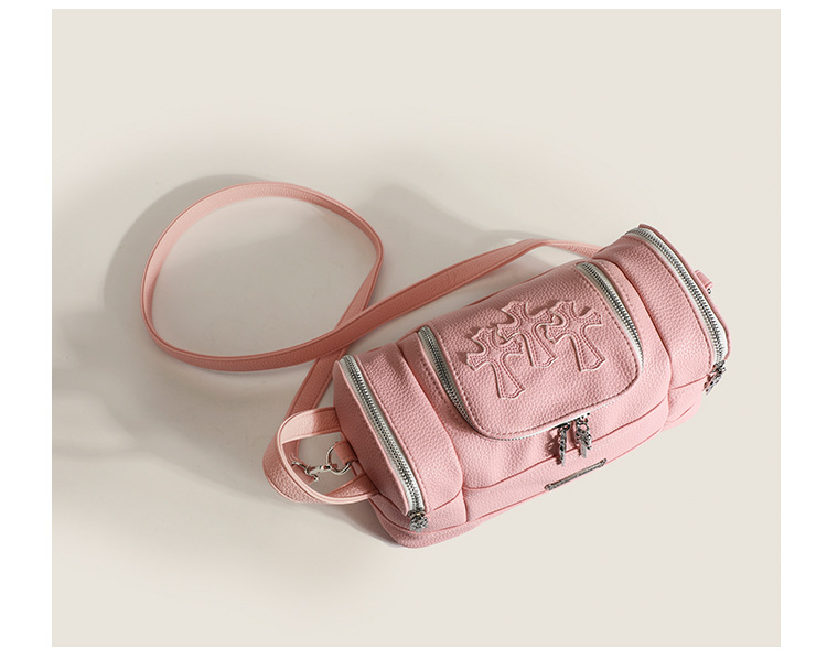 克罗心精致慵懒PU皮水桶包新款INS潮街拍单肩包十字架休闲托特包
