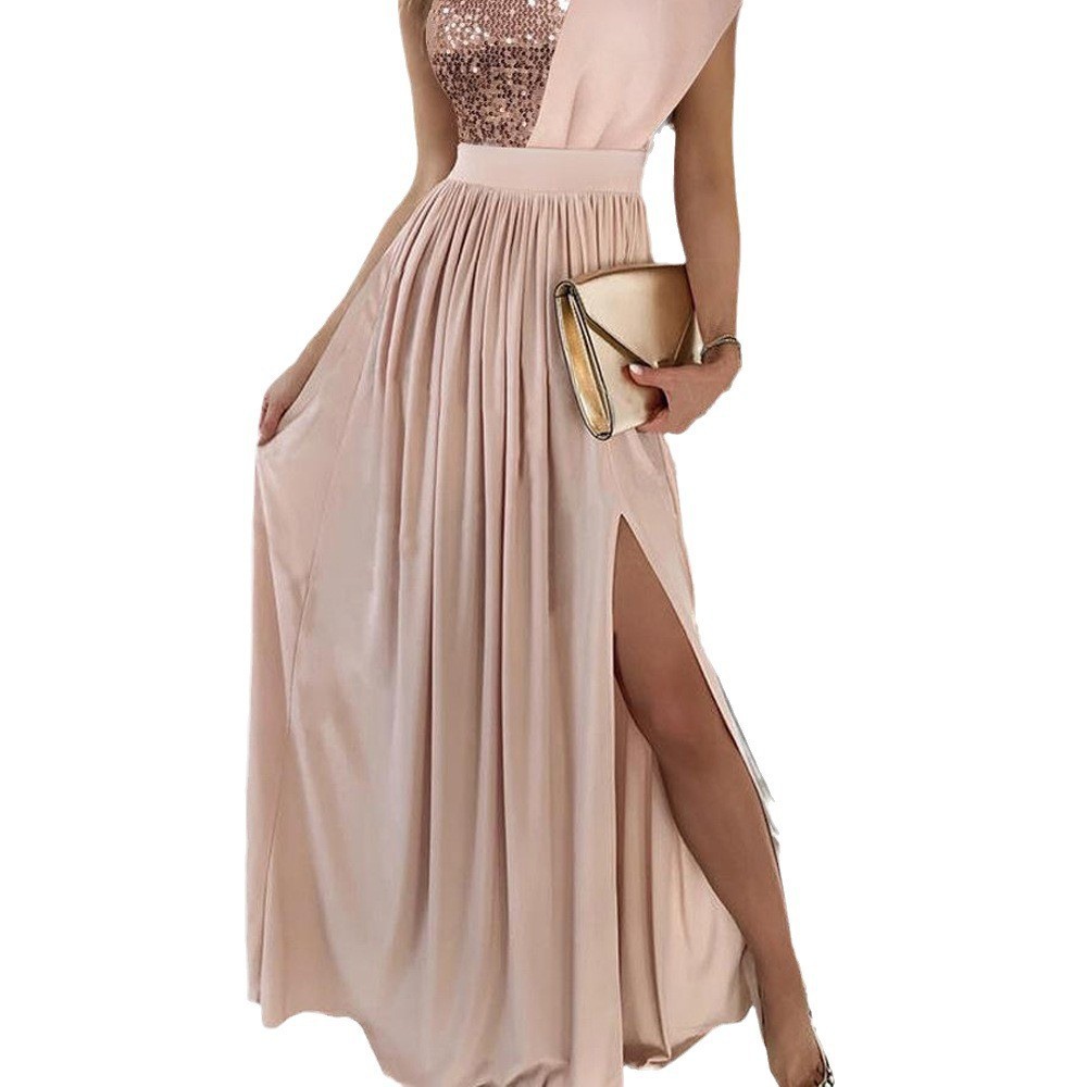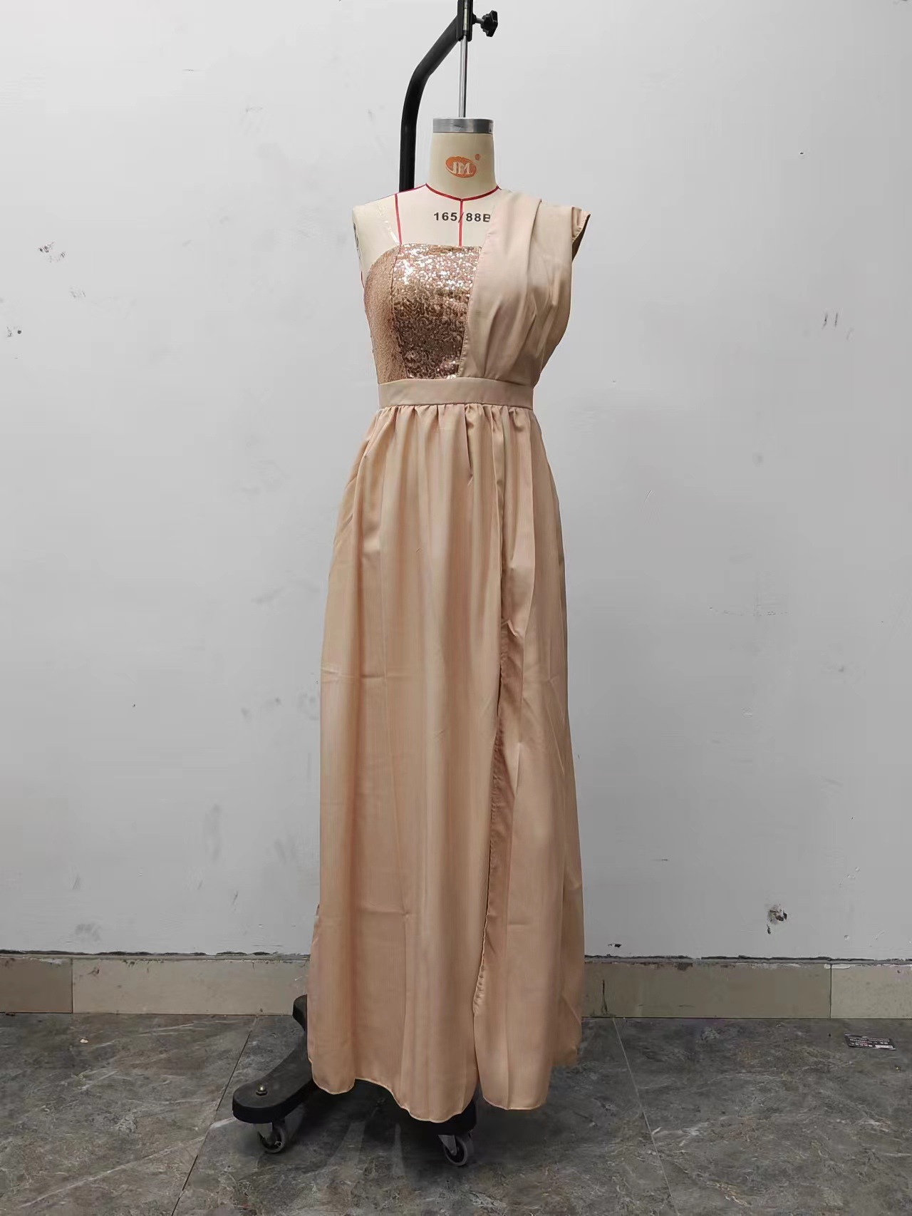 クロスボーダー 2025 ヨーロッパとアメリカの新しいパーティースパンコールワンラインカラースリットドレス INS カジュアルファッションドレス女性用