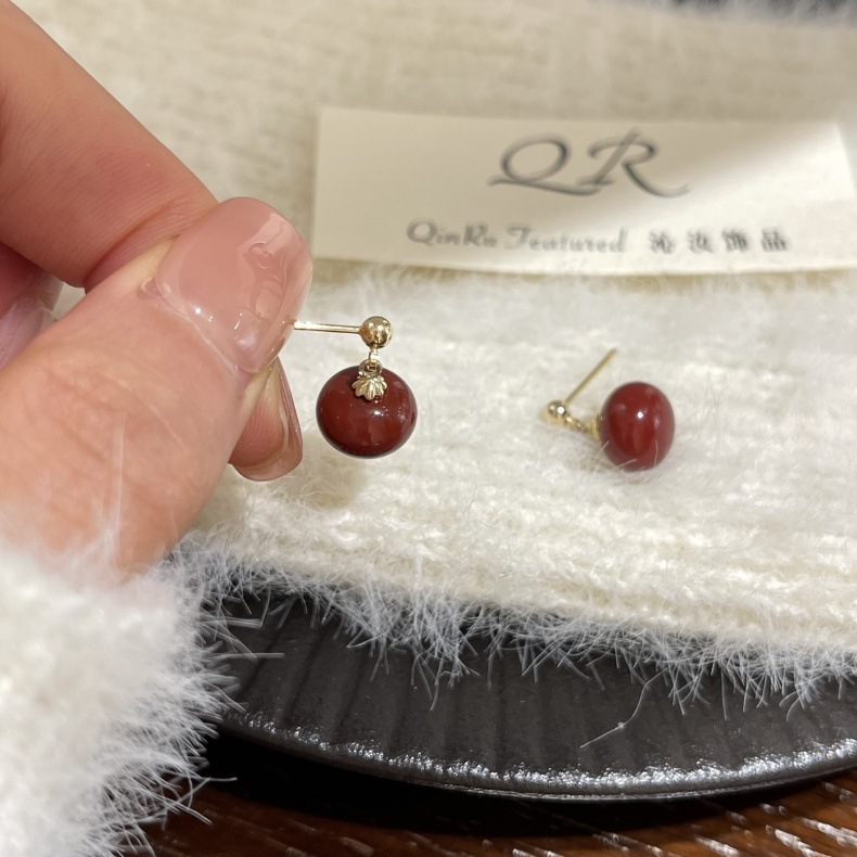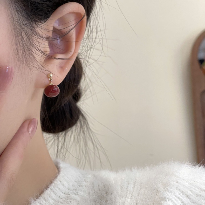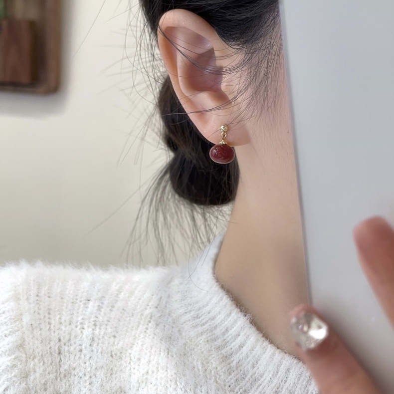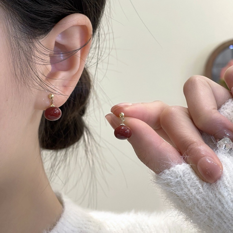 秋冬新年赤いピアスS925銀針ブルゴーニュ赤い滴油高級ピアス