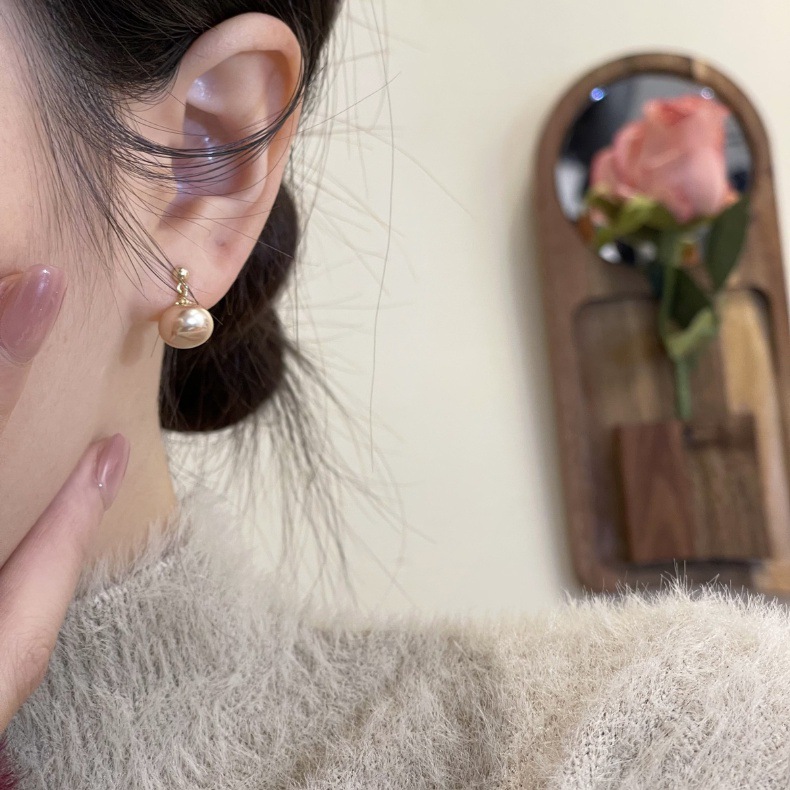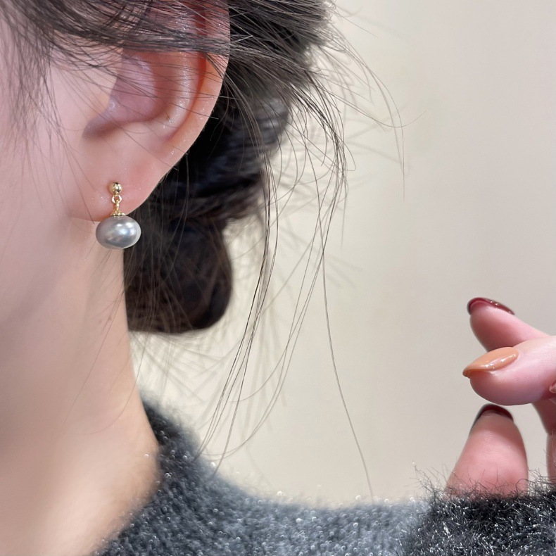 気質の灰色の真珠は簡単で、ピアスは軽くて高級で、レトロな2023新型の秋冬の小さい耳飾りの銀の針になります。