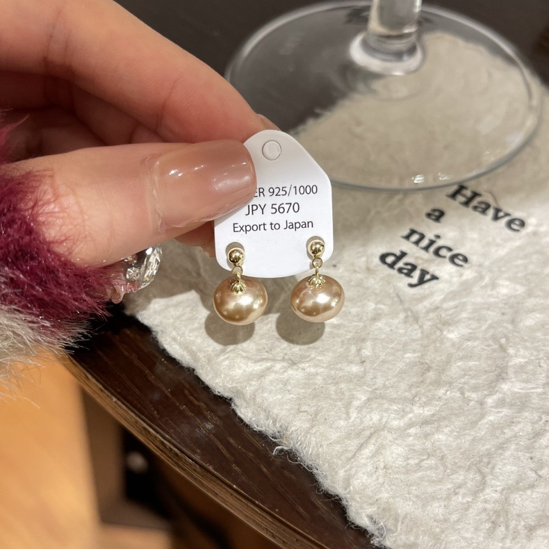 レトロな香港風の糸を引く円形の豆の真珠のs925銀の針のピアスの軽い豪華な小さい大衆のイヤリングの気質の百合の耳飾り