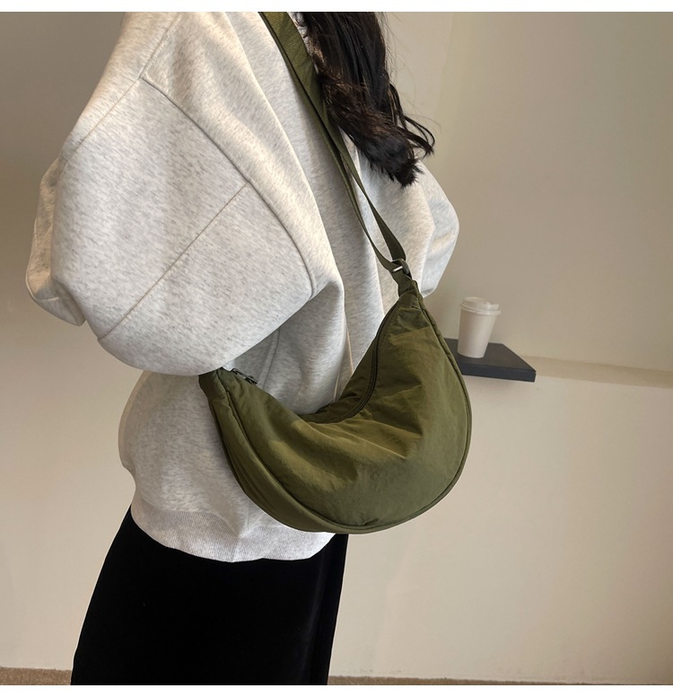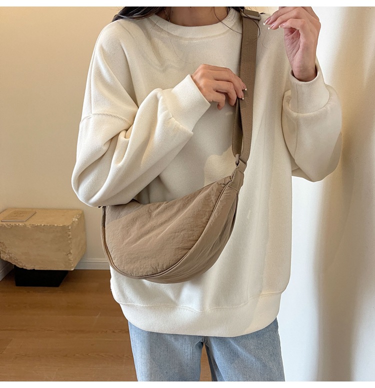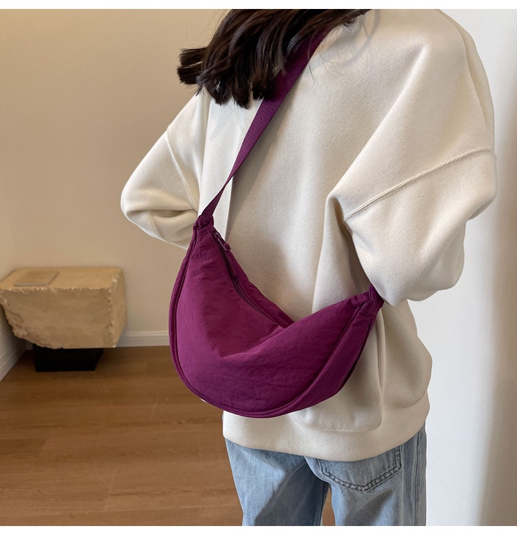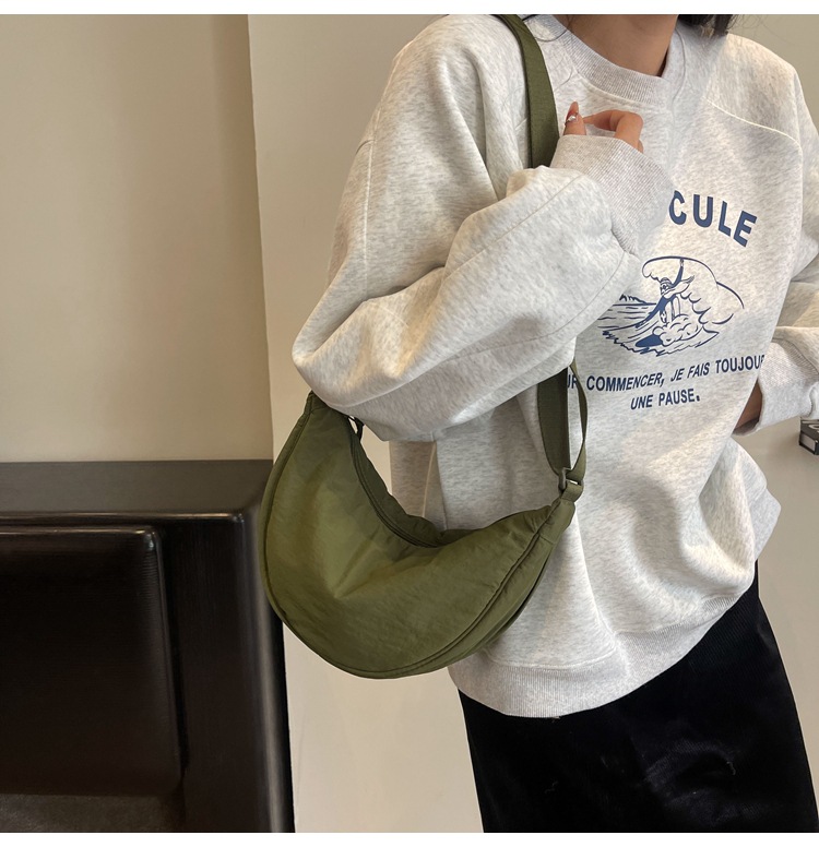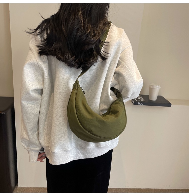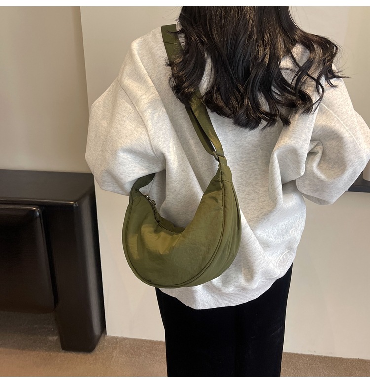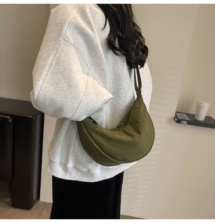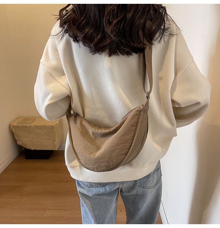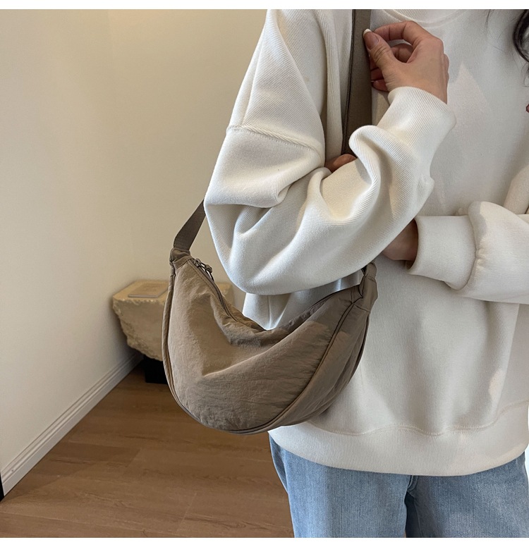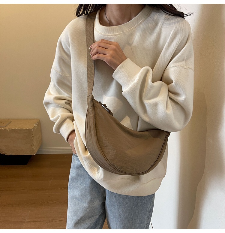 通勤斜めショルダーバッグしわ付き三日月放浪バッグシングルショルダーバッグ女性ナイロン布餃子バッグ大容量三日月バッグ