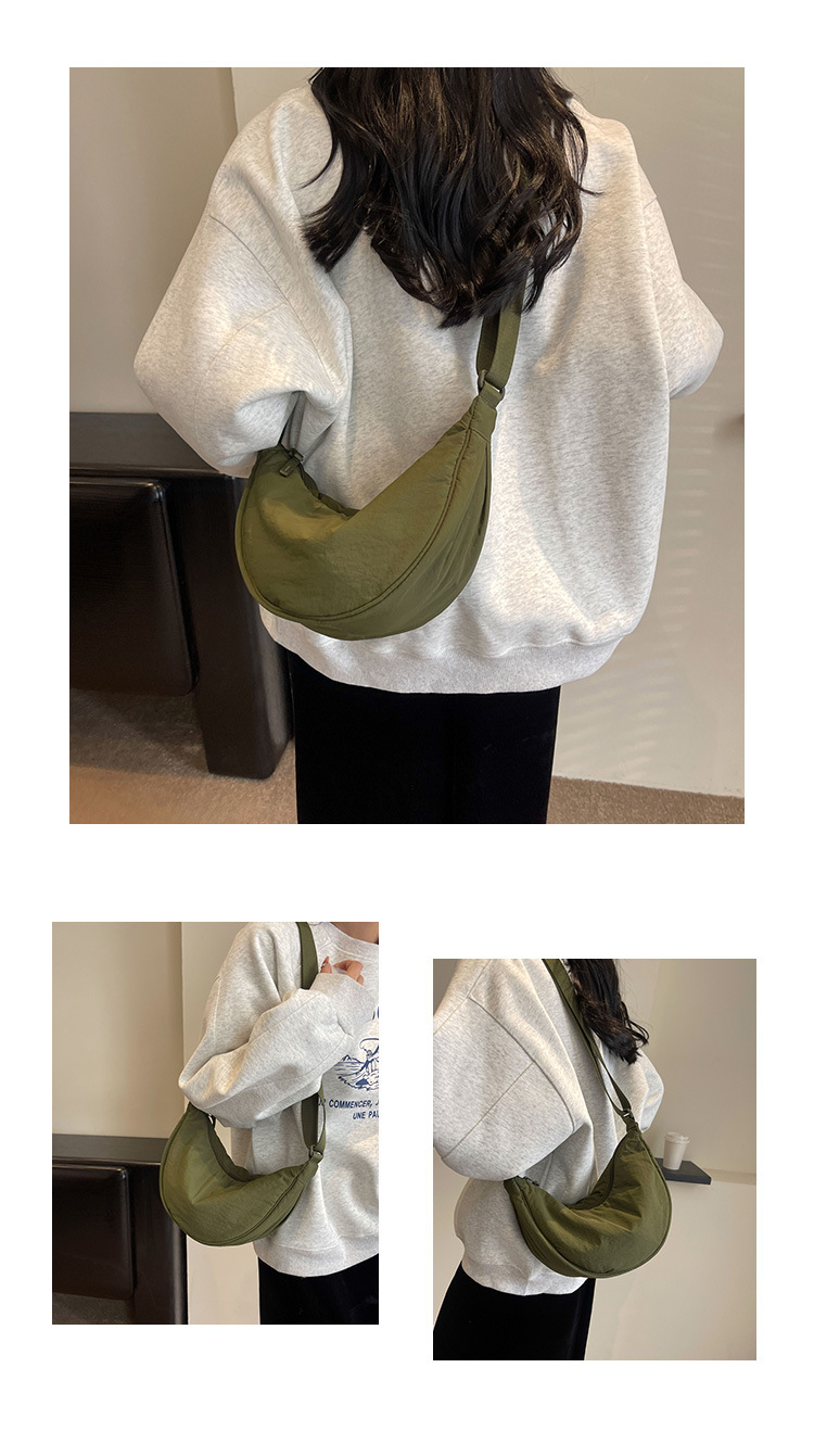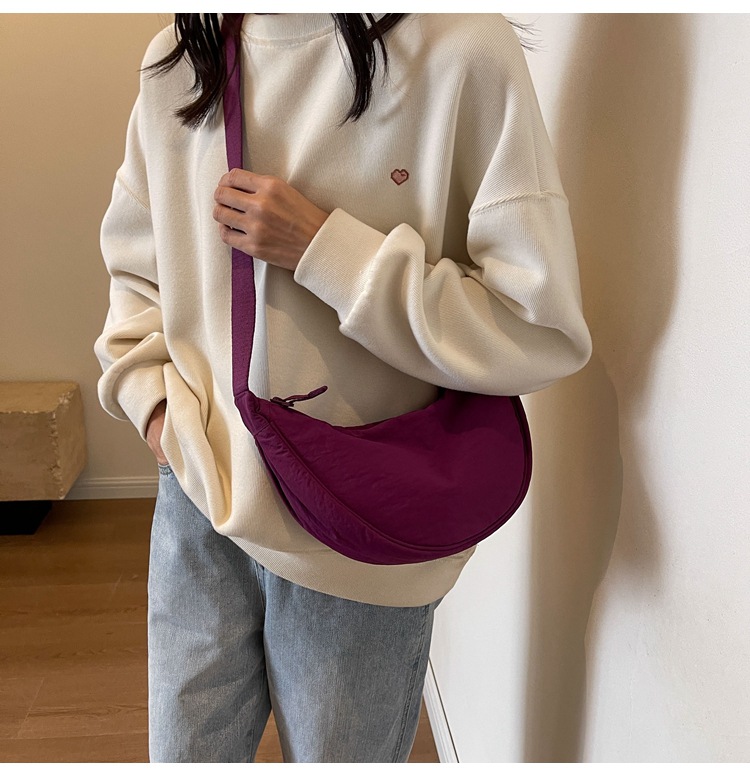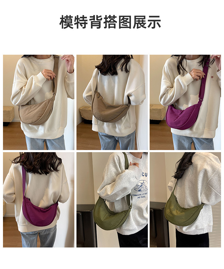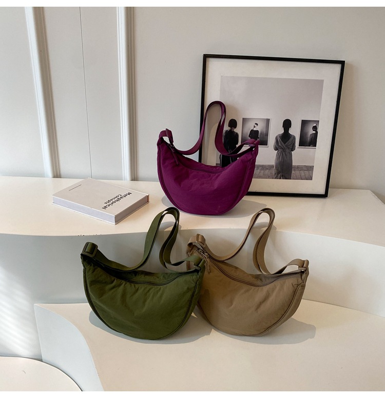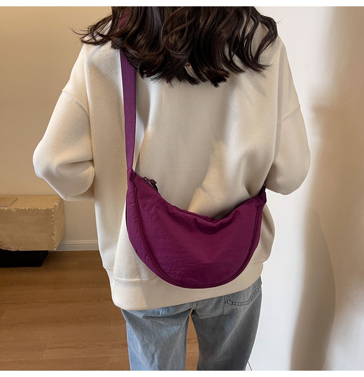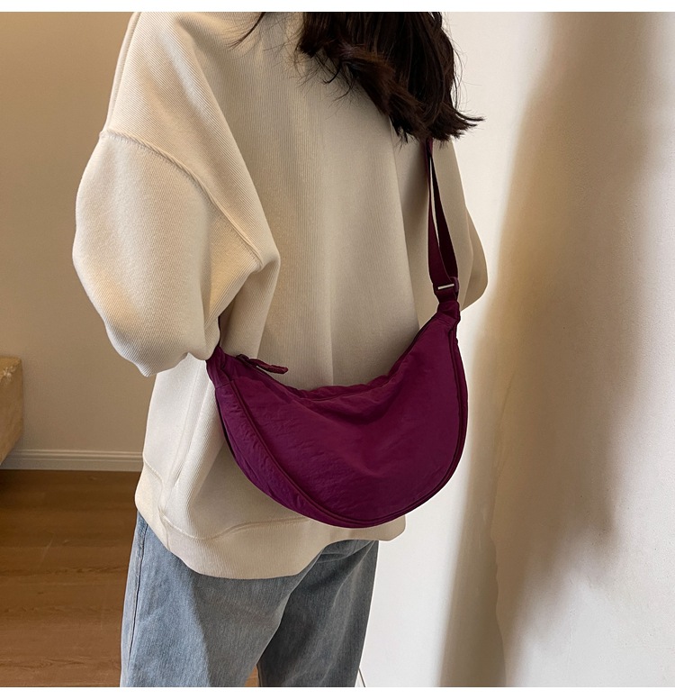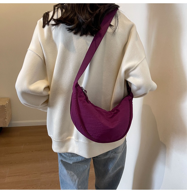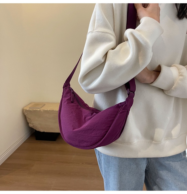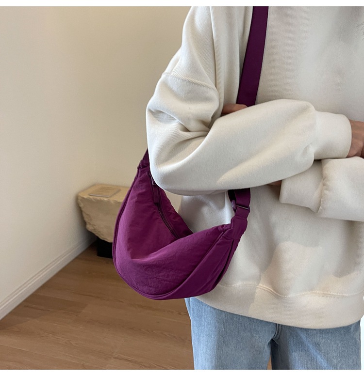 通勤斜めショルダーバッグしわ付き三日月放浪バッグシングルショルダーバッグ女性ナイロン布餃子バッグ大容量三日月バッグ