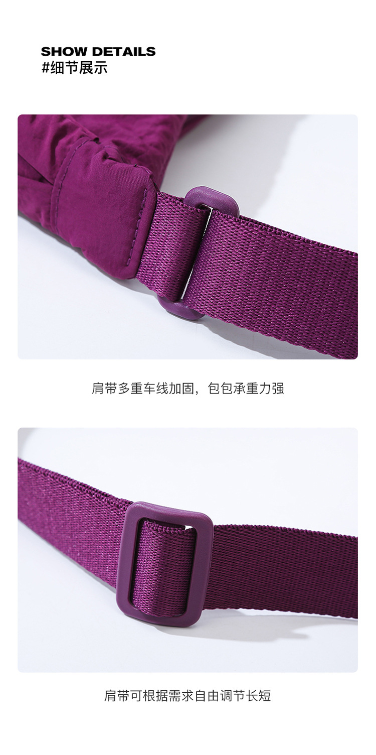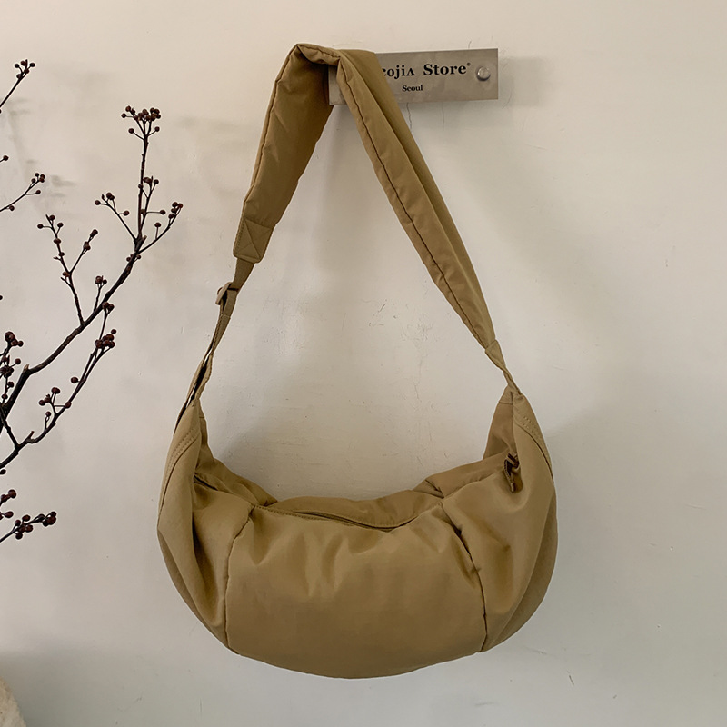 韩国大容量宽肩带尼龙布包夹棉斜挎包女学生褶皱饺子包通勤单肩包