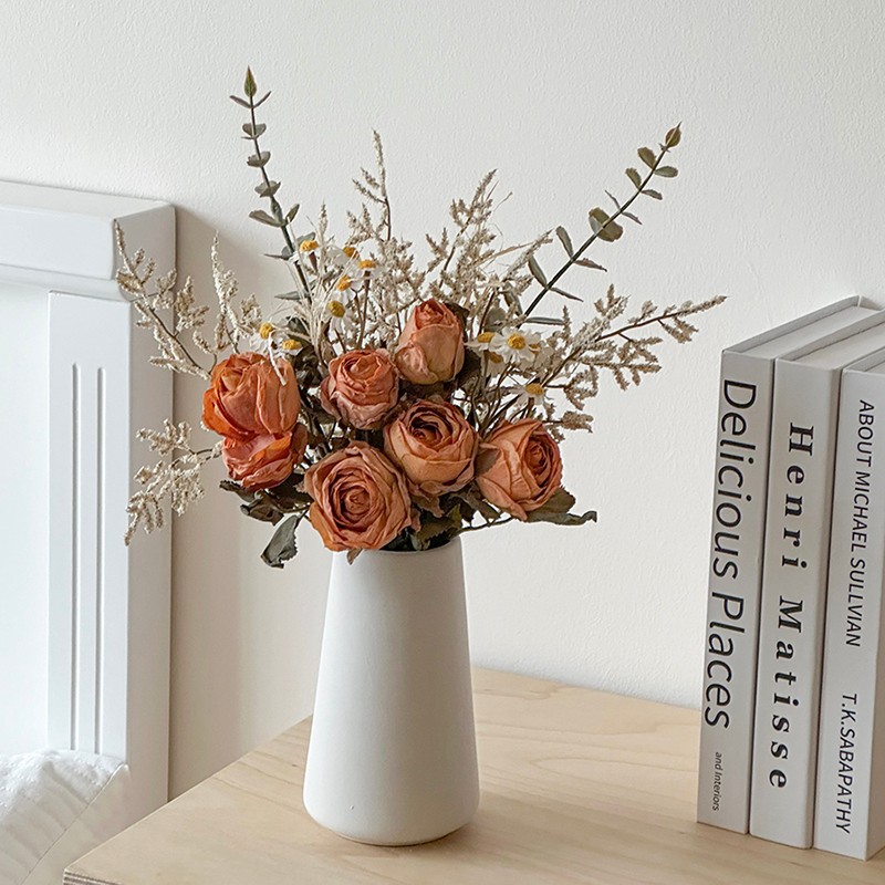 軽くて豪華なバラの小さい菊の乾いた花の花束の造花のシミュレーションの花は客間の食卓の花の装飾品を飾っています。
