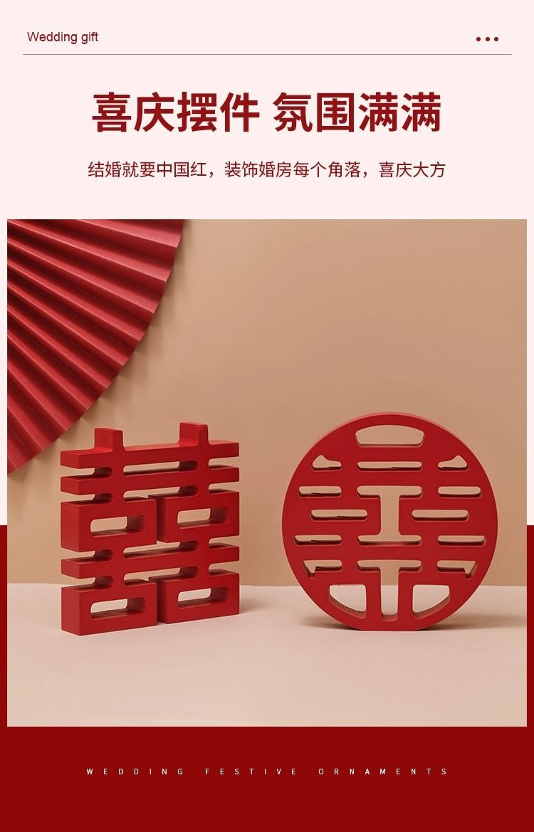 現物卸売り結婚用品大全創意木質立体喜字置物結婚式の結婚式の置物
