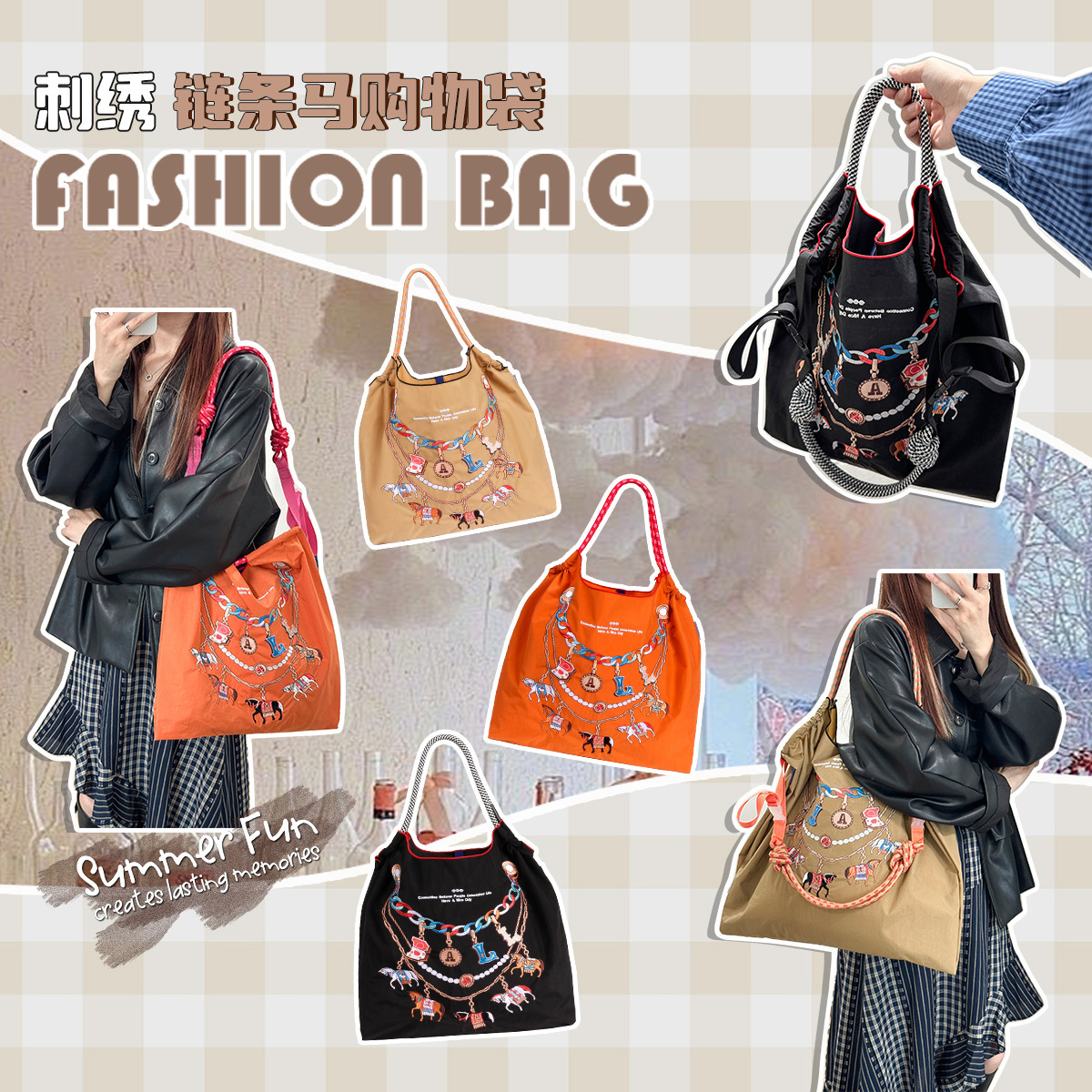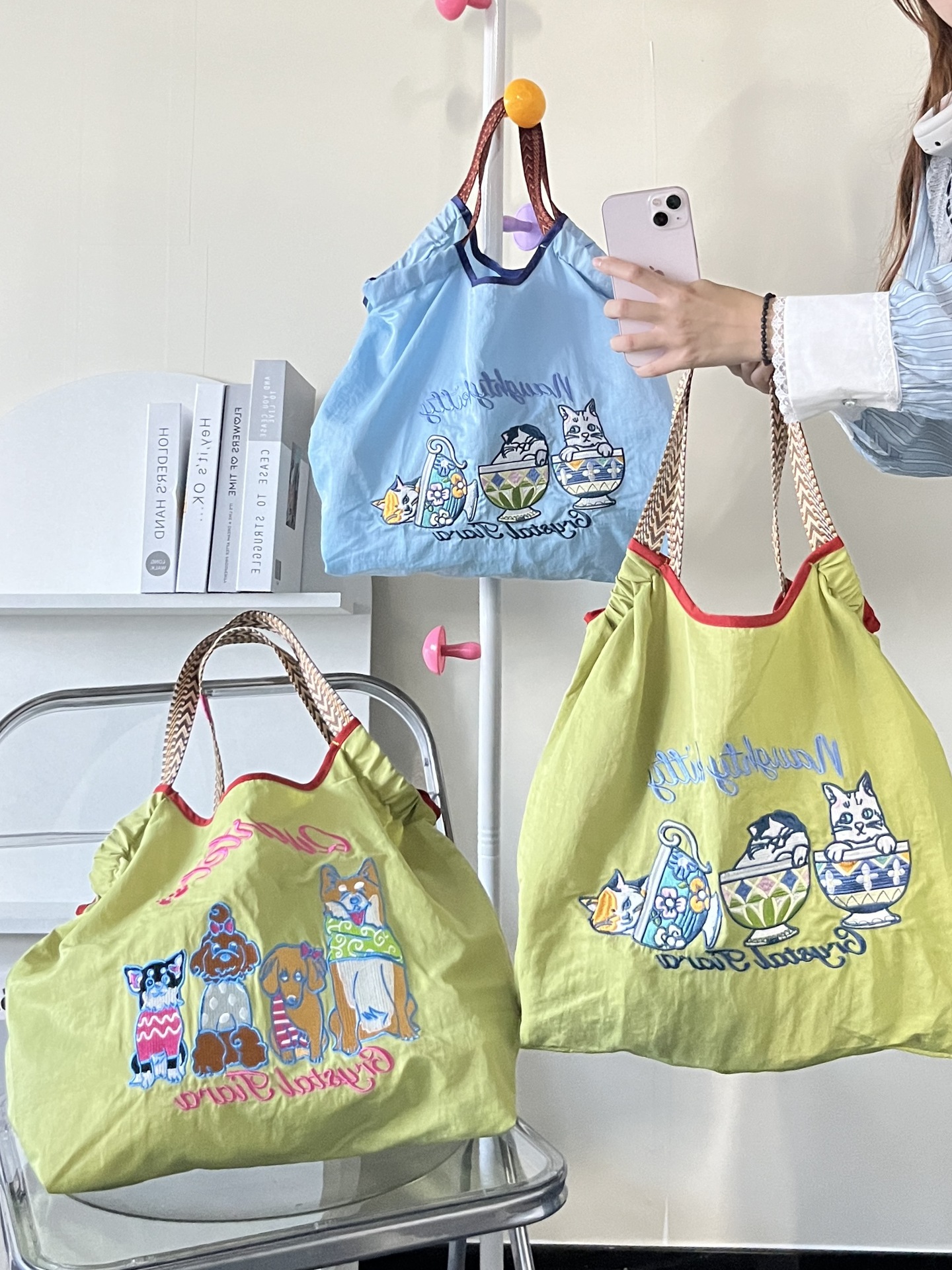 最近日系炒鸡火的刺绣环保手提布袋
