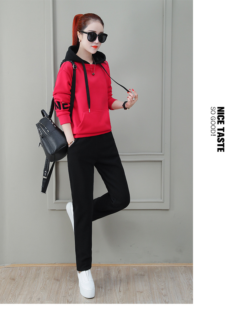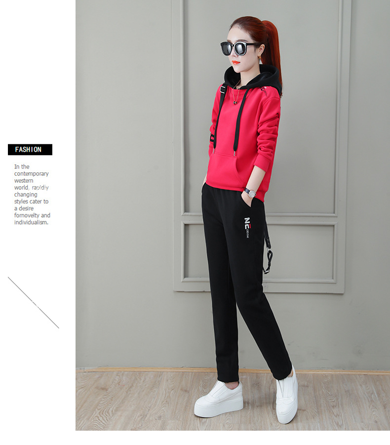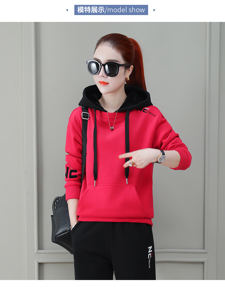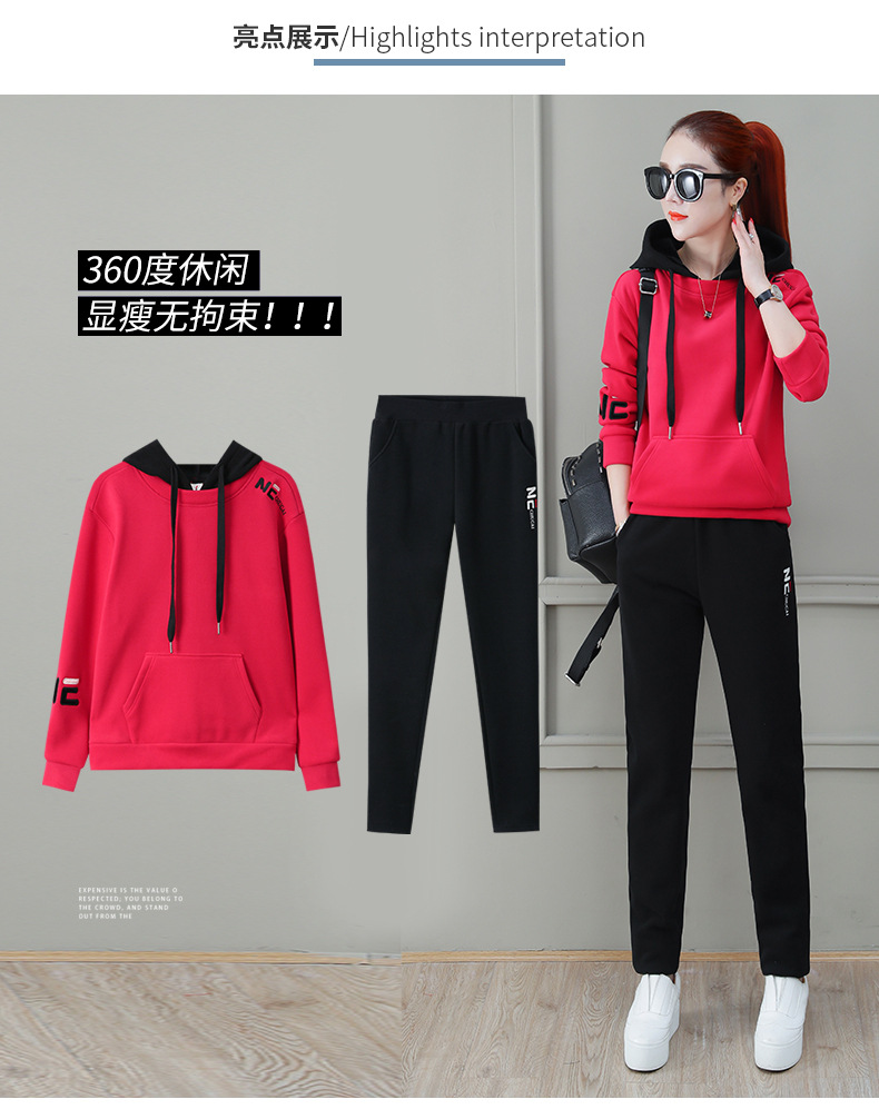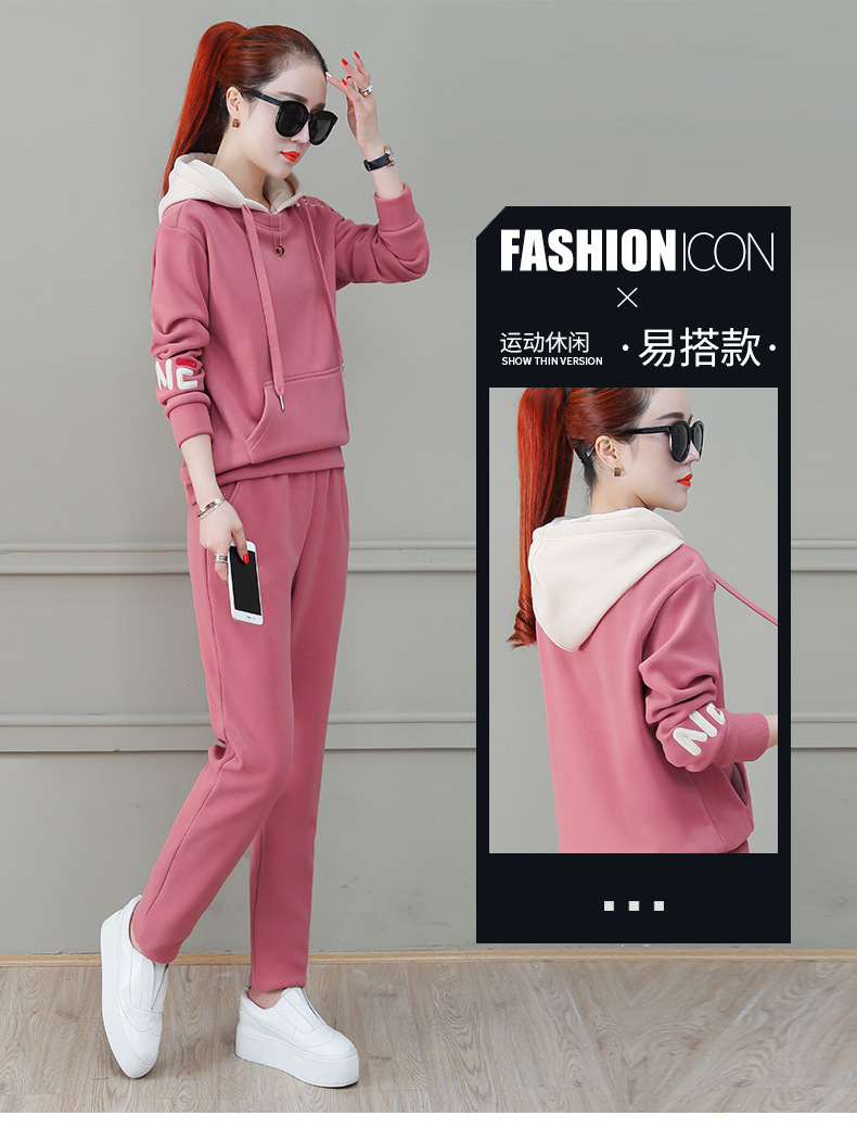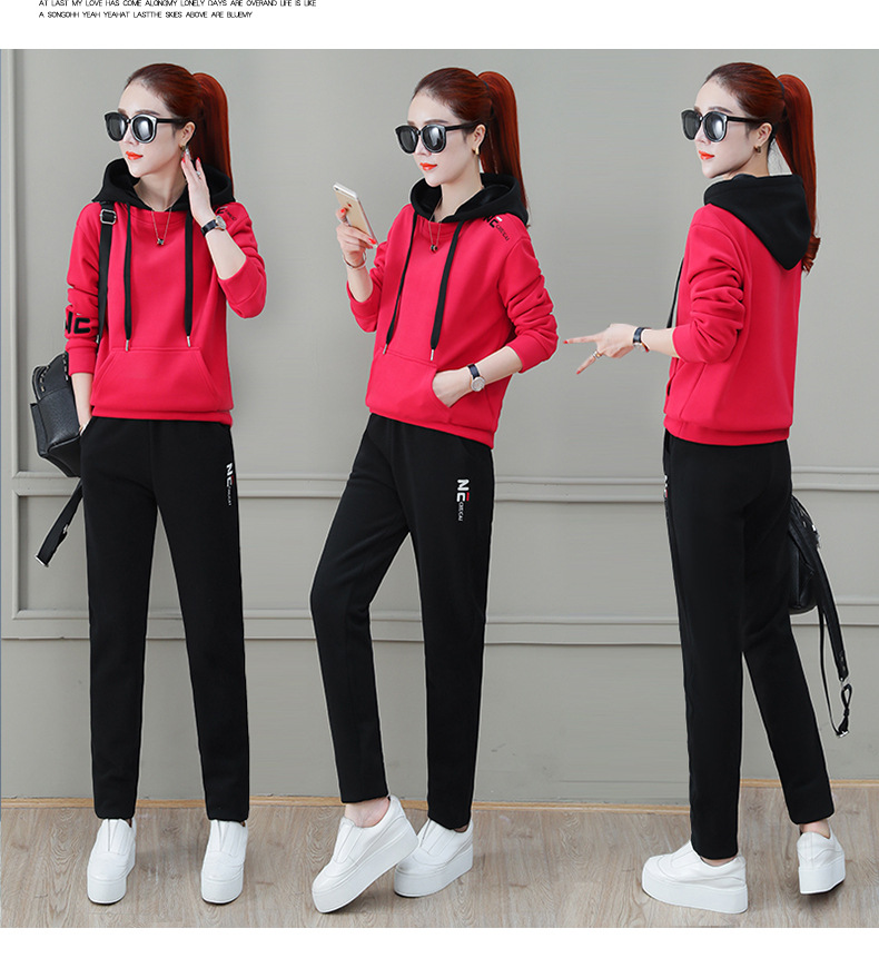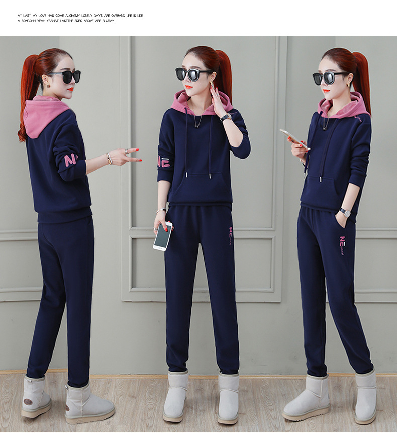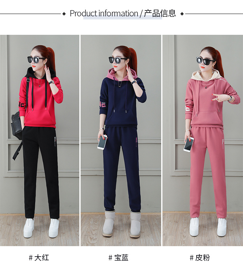 秋冬保温スーツカジュアルファッションスポーツウェアゆるい立襟スウェットパンツ2点セット女装ベルベット厚手