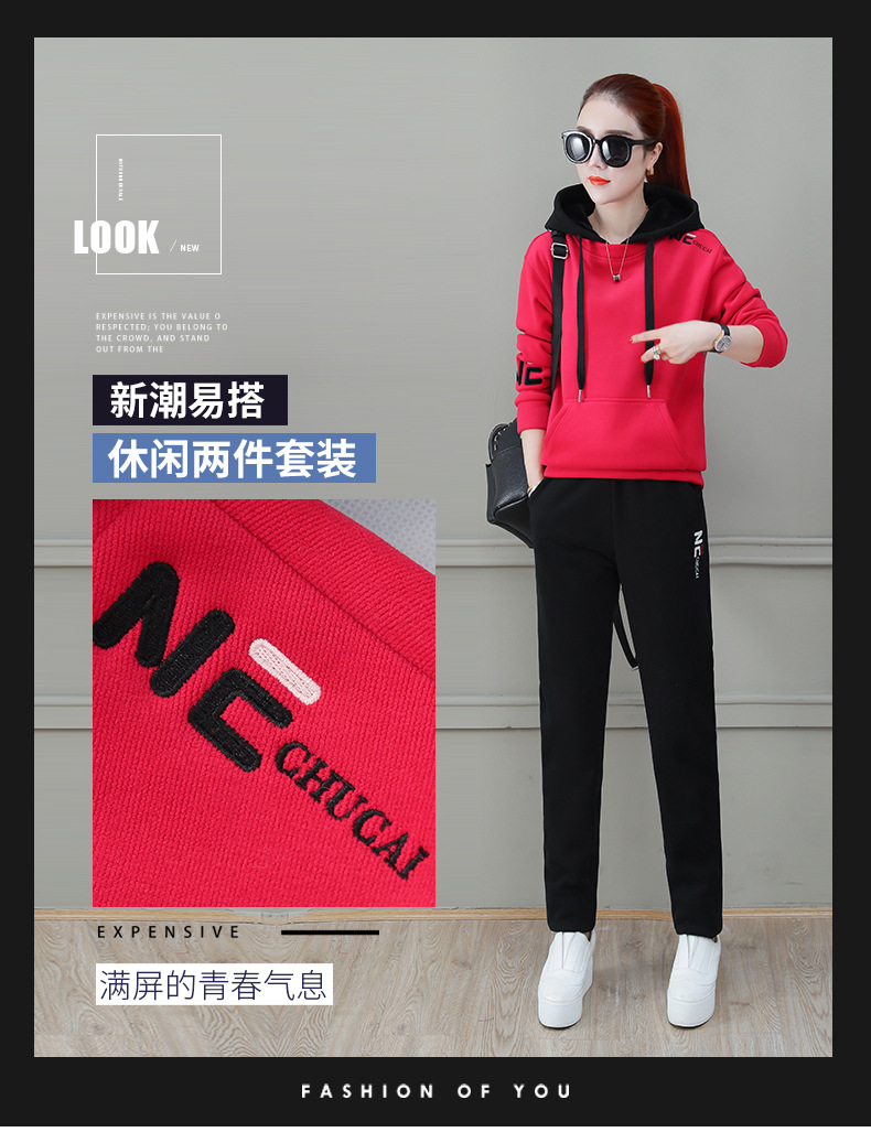 秋冬のベルベットはゆったりとしたカジュアルなスポーツスーツを厚くして、長袖のガードルのズボンを温めて、ファッションの婦人服を2セットにします。