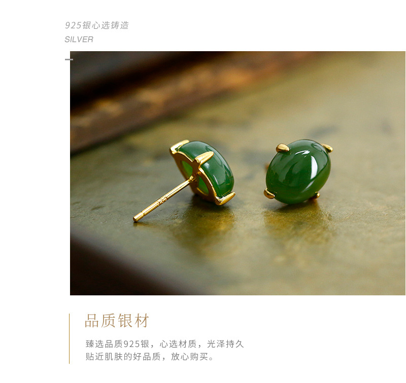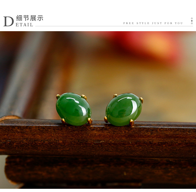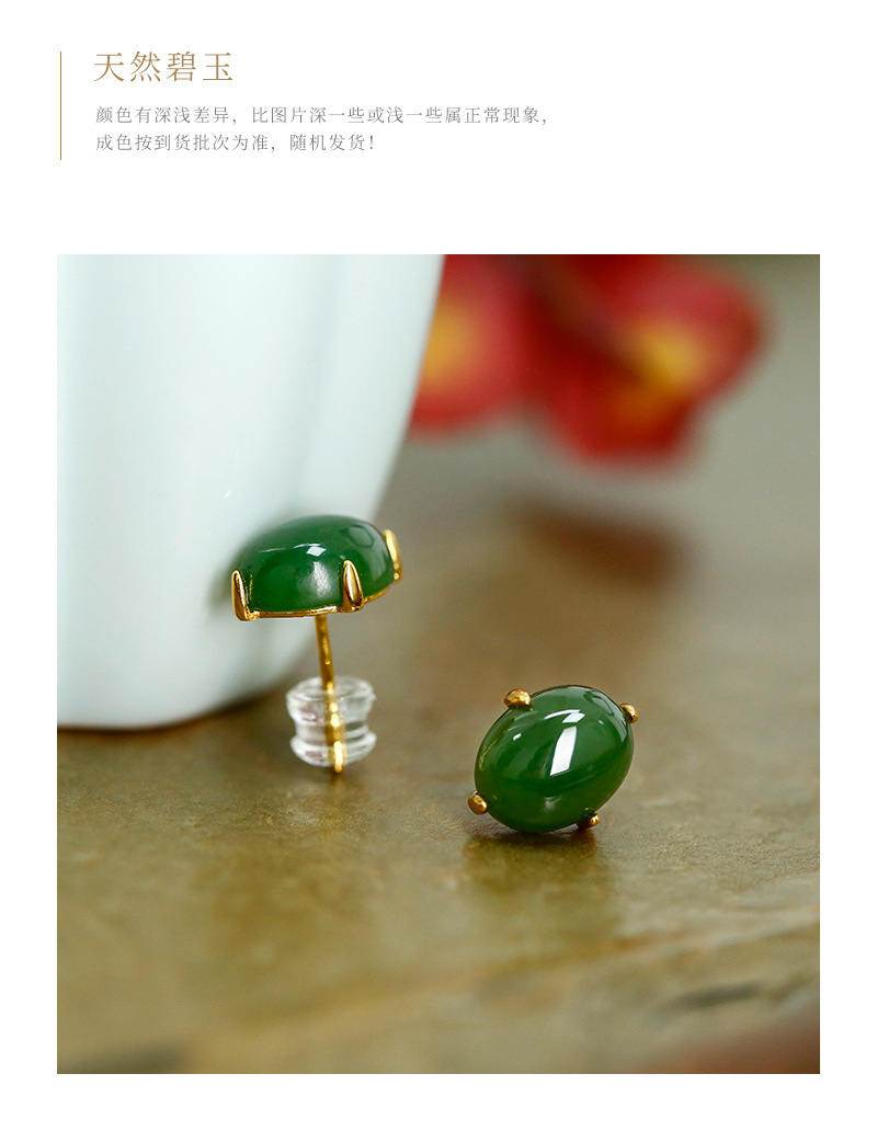 24時間現物代発 | S925銀金メッキ碧玉天然碧玉シンプル耳飾り卵面四爪仙気
