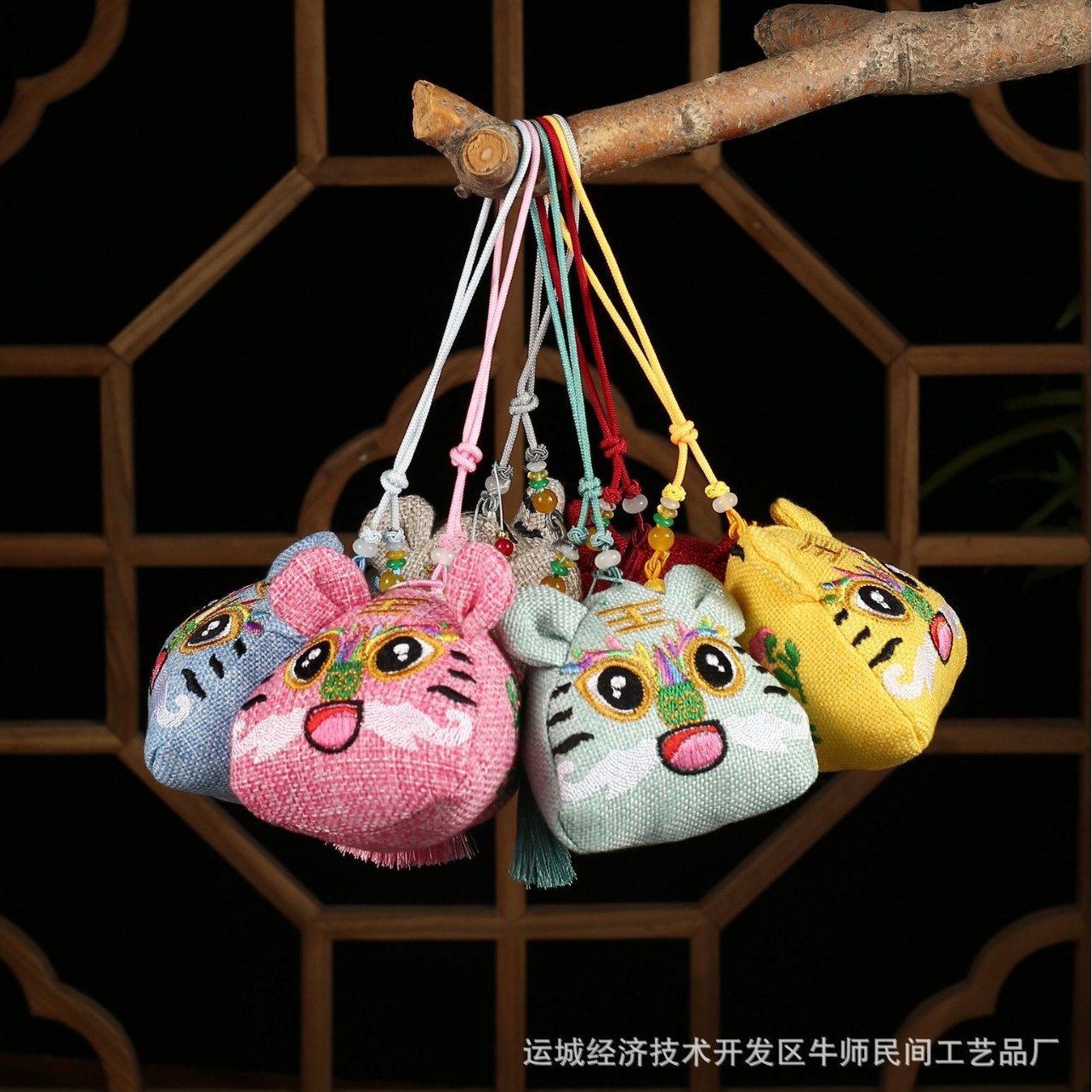 伝統的な民芸刺繍立体小さな布虎平和祝福屋内車ペンダントバッグアクセサリー中国風サシェ