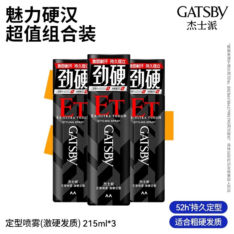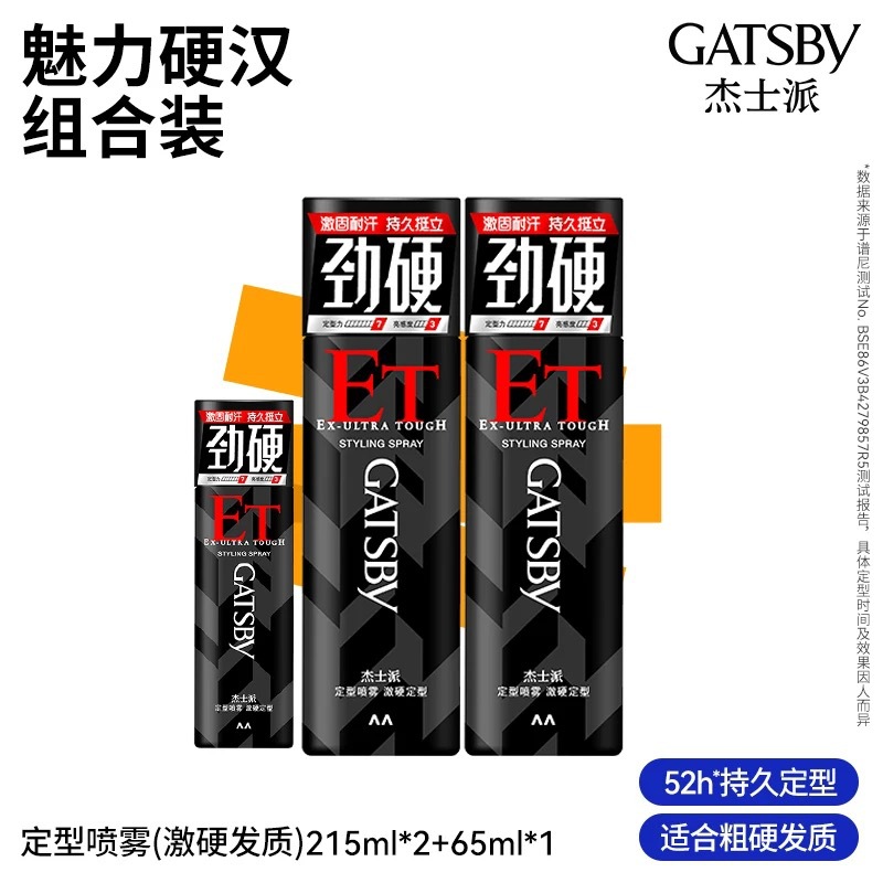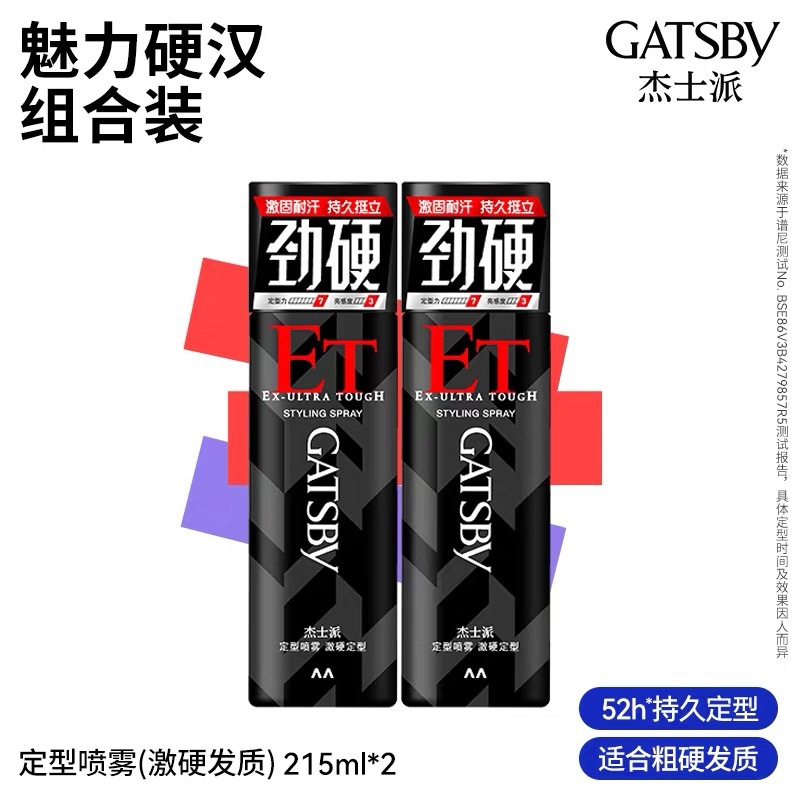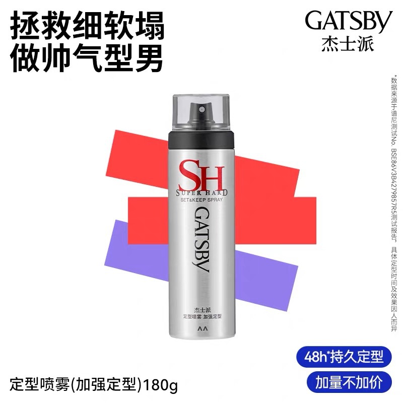 製品名 GATSBY Jiespai 180 グラム強化スタイリングスプレーヘアスプレーメンズドライグルースタイリング速乾性エクストラハードラージシルバーボトル