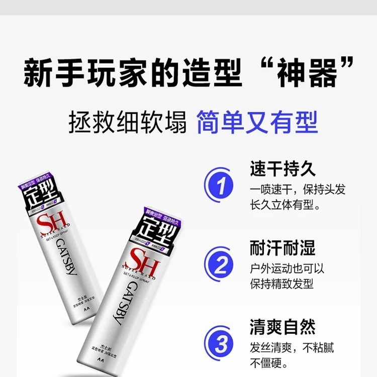 杰士派180g银瓶GATSBY定型喷雾加强造型男士发胶女士干胶便携旅行