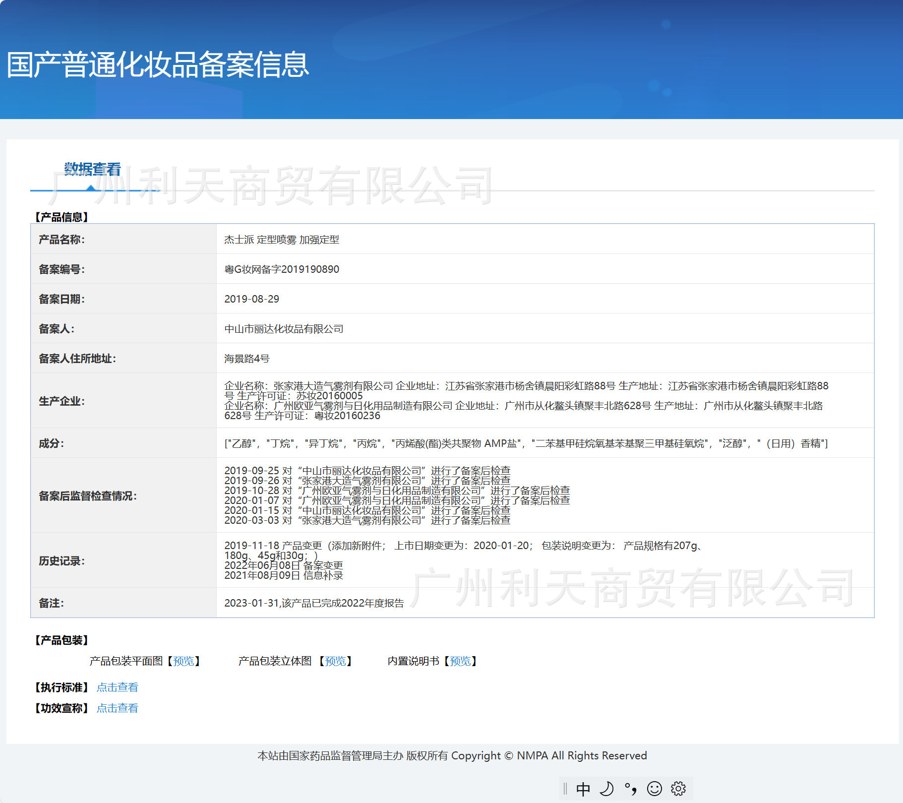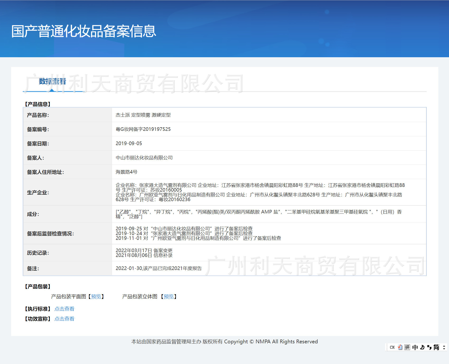 特殊化粧品登録証番号 広東Gメイクアップネットワーク準備番号 2019197525