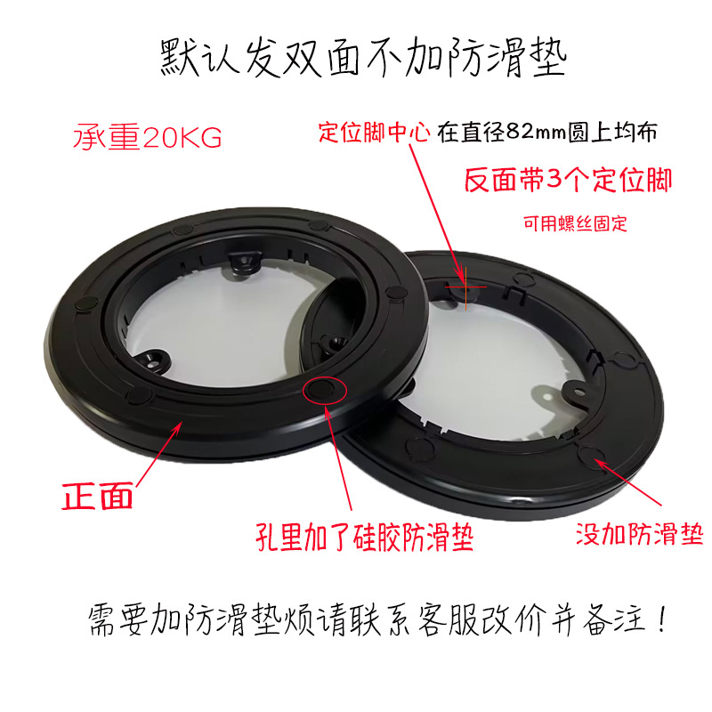 跨境空心塑料转盘手动转动360静音塑胶拼图桌旋转转盘黑色底座