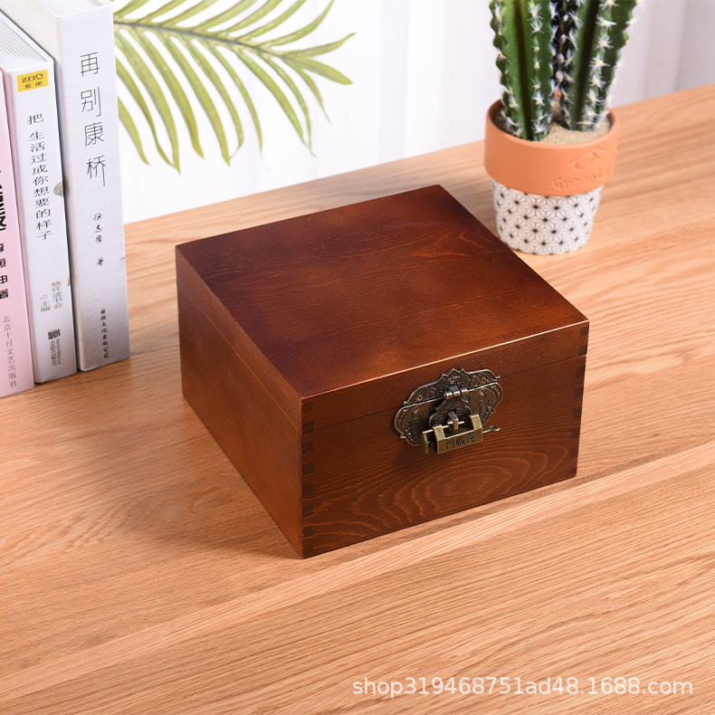 木製収納ボックスレトロふた付きロック収納ボックスデスクトップジュエリーギフト包装木製ボックス