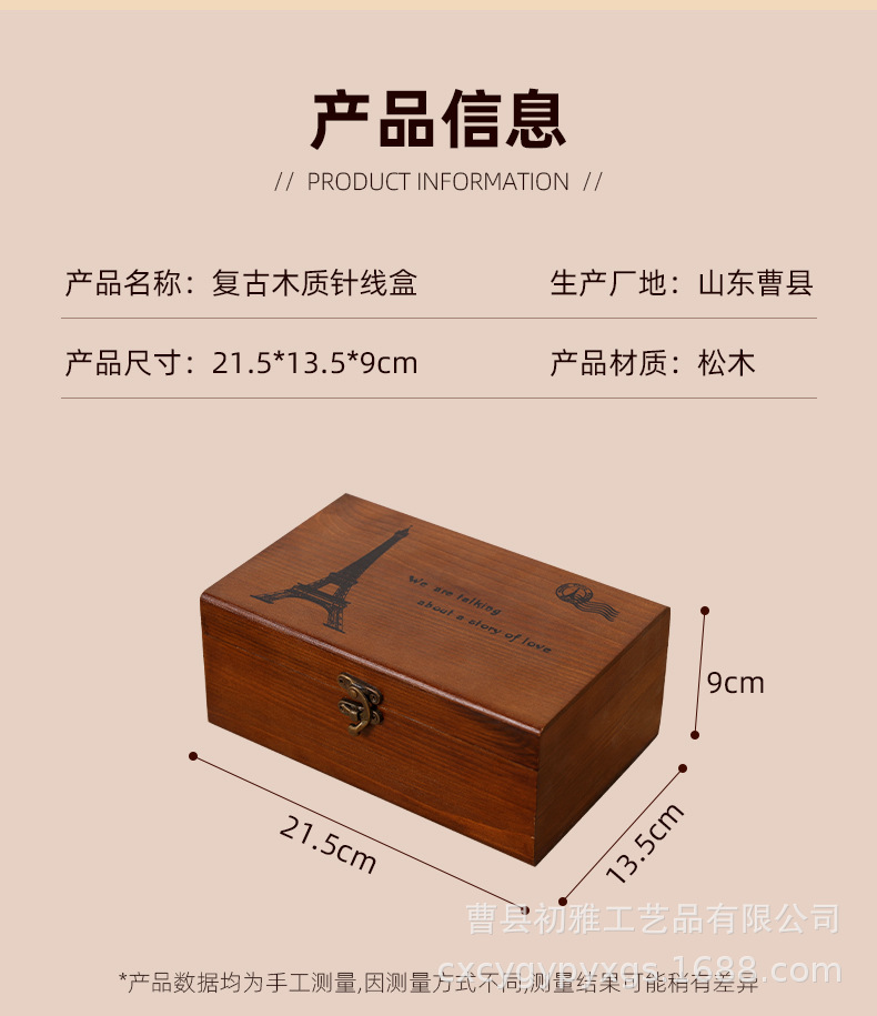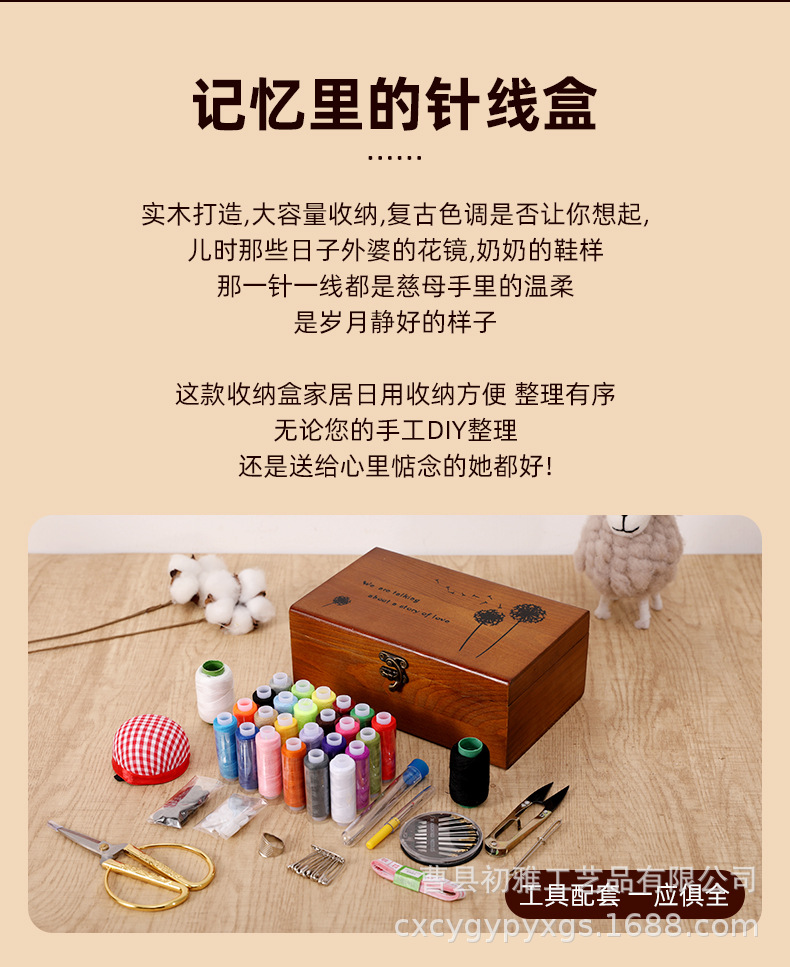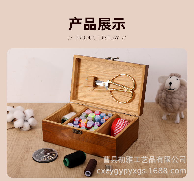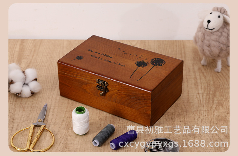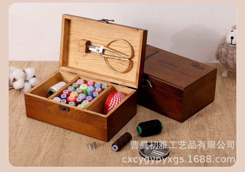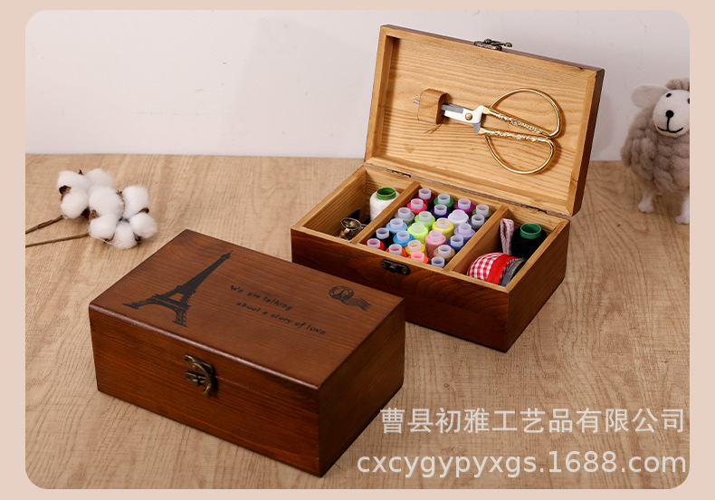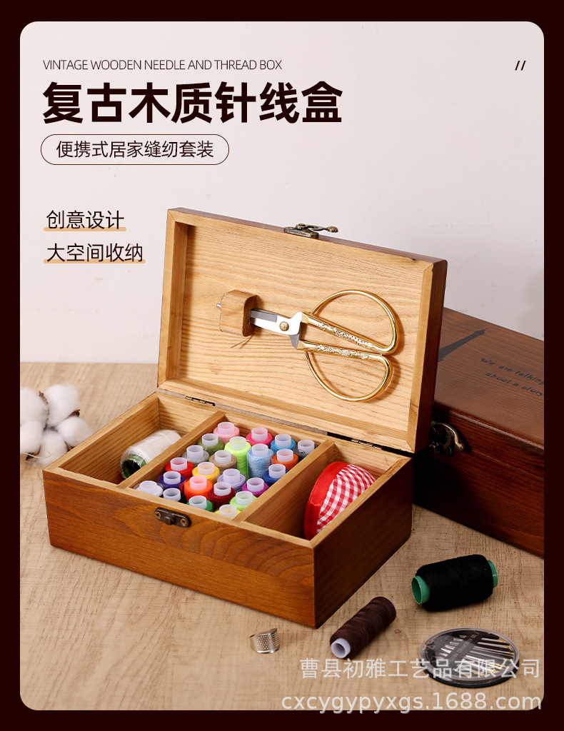 レトロ木製裁縫箱セット家庭用裁縫箱家庭用デスクトップ収納包装箱木箱