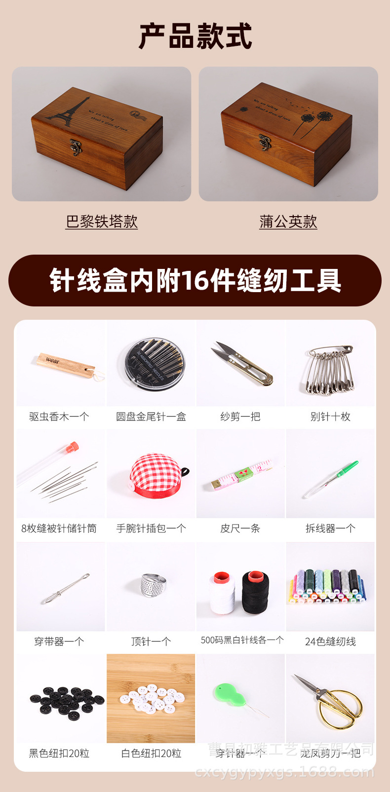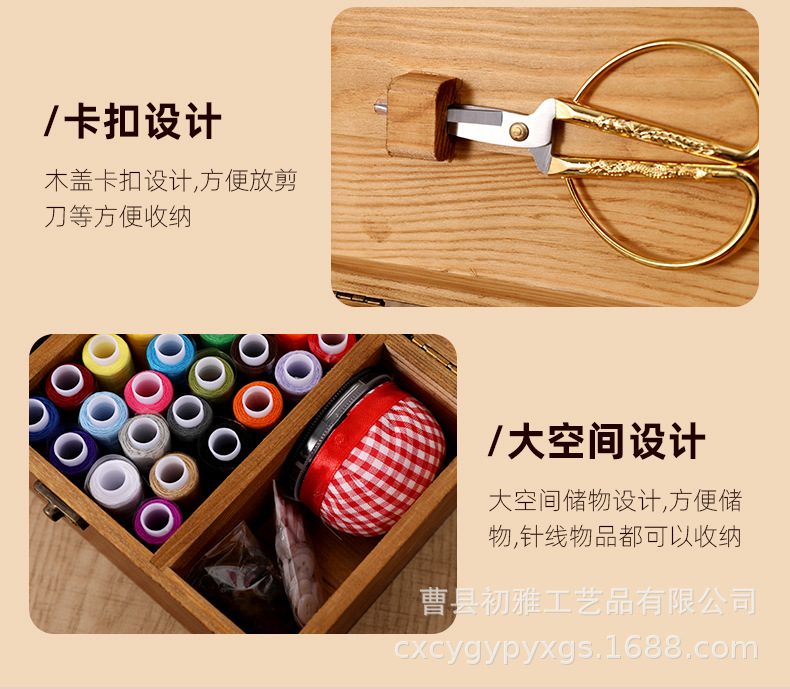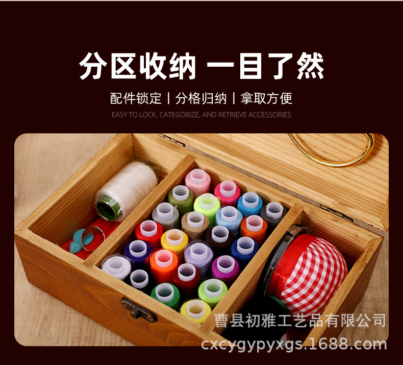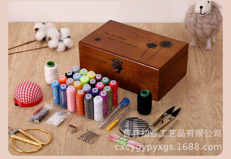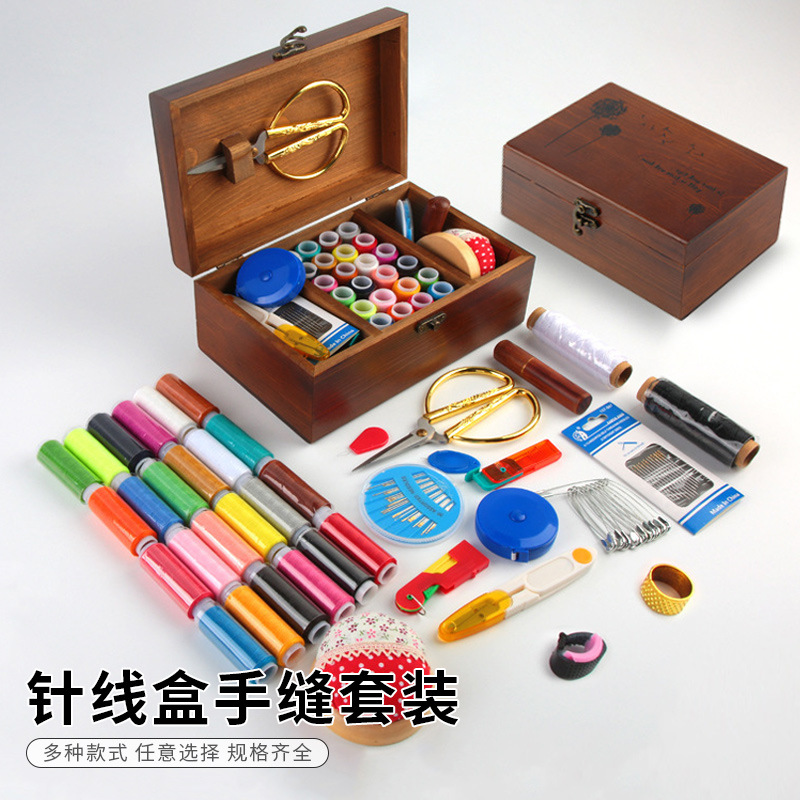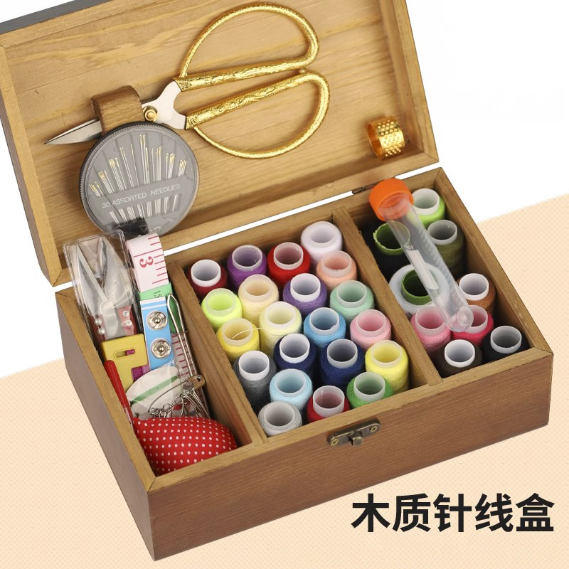 缝纫针线盒家用套装多功能收纳家用缝补实木收纳针线包工具套装
