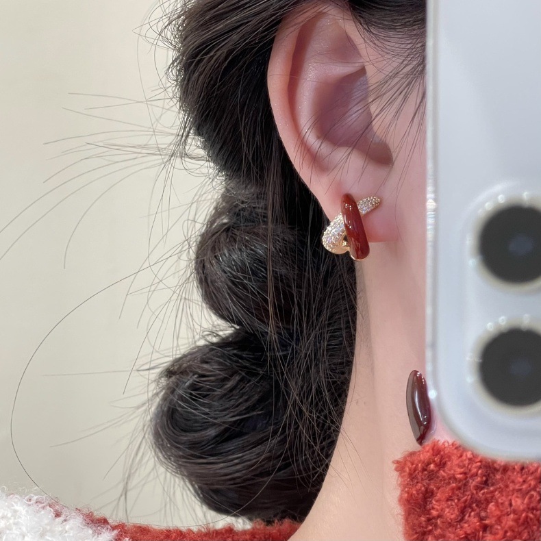 秋冬の赤いリングの耳のボタンの女性の軽い豪華な大衆のデザイン感の高級なイヤリングの気質のファッションの復古のシンプルな耳の輪