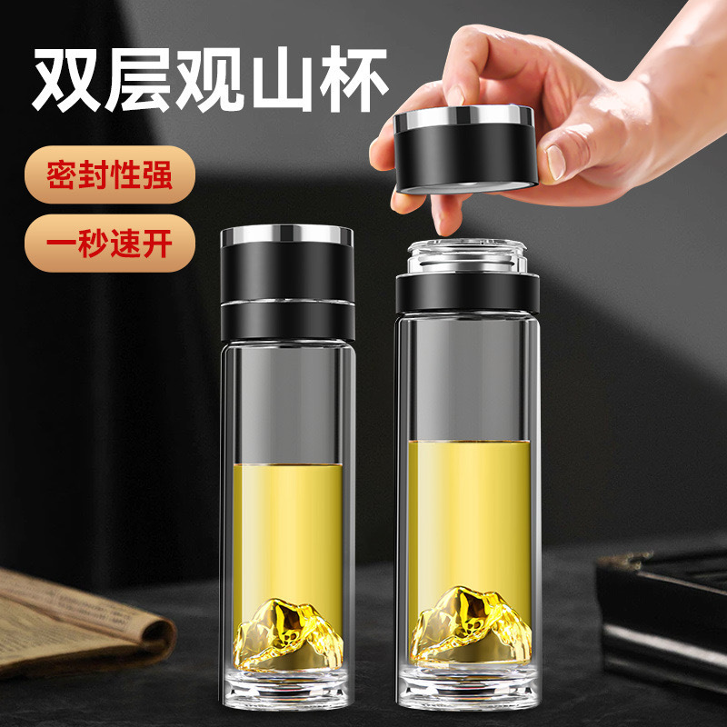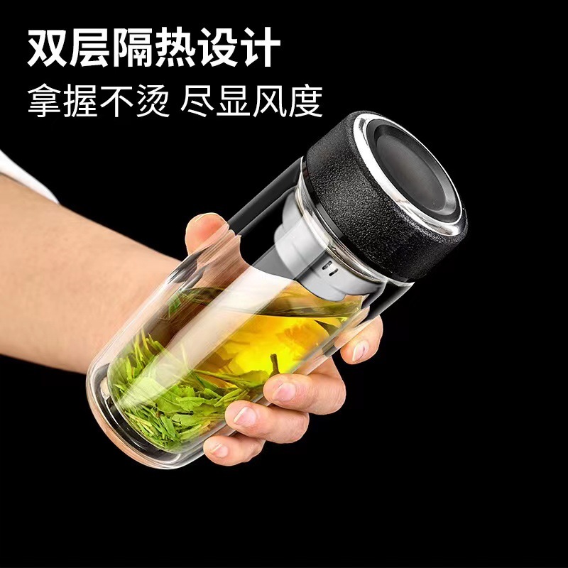 二重携帯カップ断熱車載家庭用カップ高ホウ素シリコン透明茶水分離フォアグラカッププレゼントロゴ
