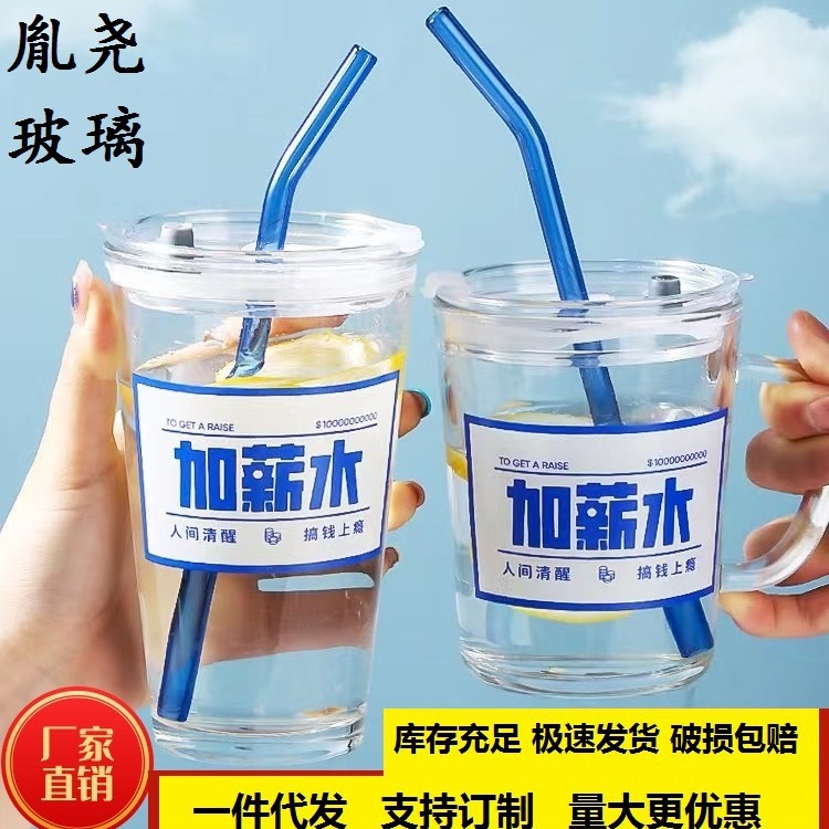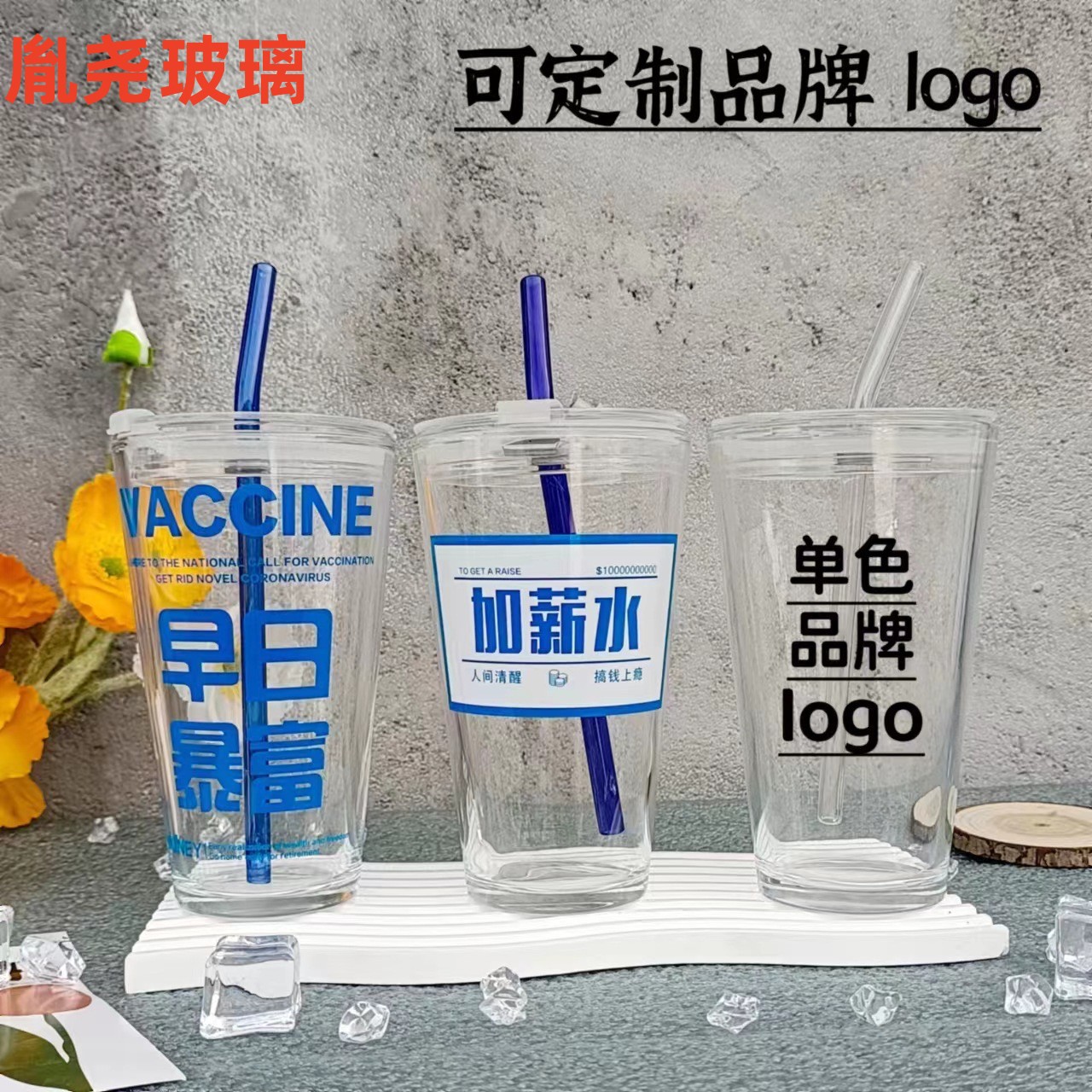 高颜値と給料が早く、ストローガラスの蓋付きカップはロゴを印刷することができます。