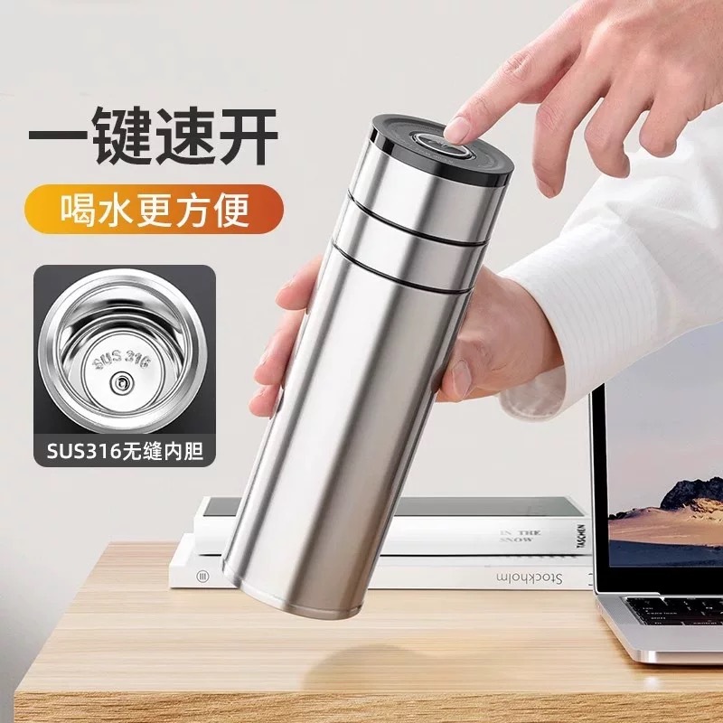 車載片手ワンタッチ開蓋速開カップ男性携帯316ステンレス保温カップ茶水分離泡茶