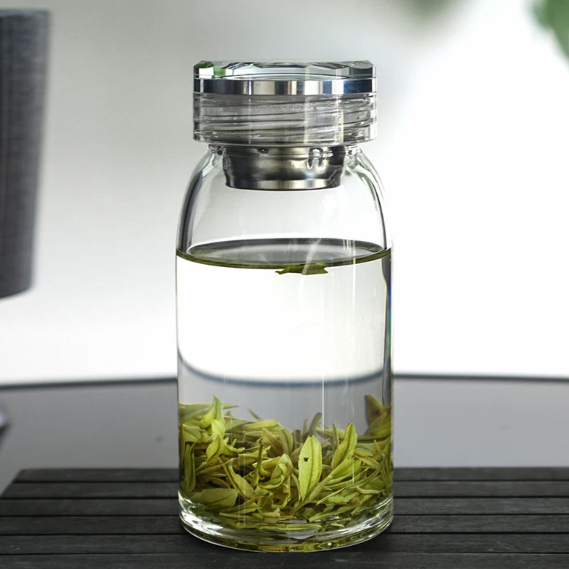 ガラス大容量ワンクリックオープン蓋大型ウォーターカップメンズ茶水分離ティーカップ夏 2024 新しいスタイル