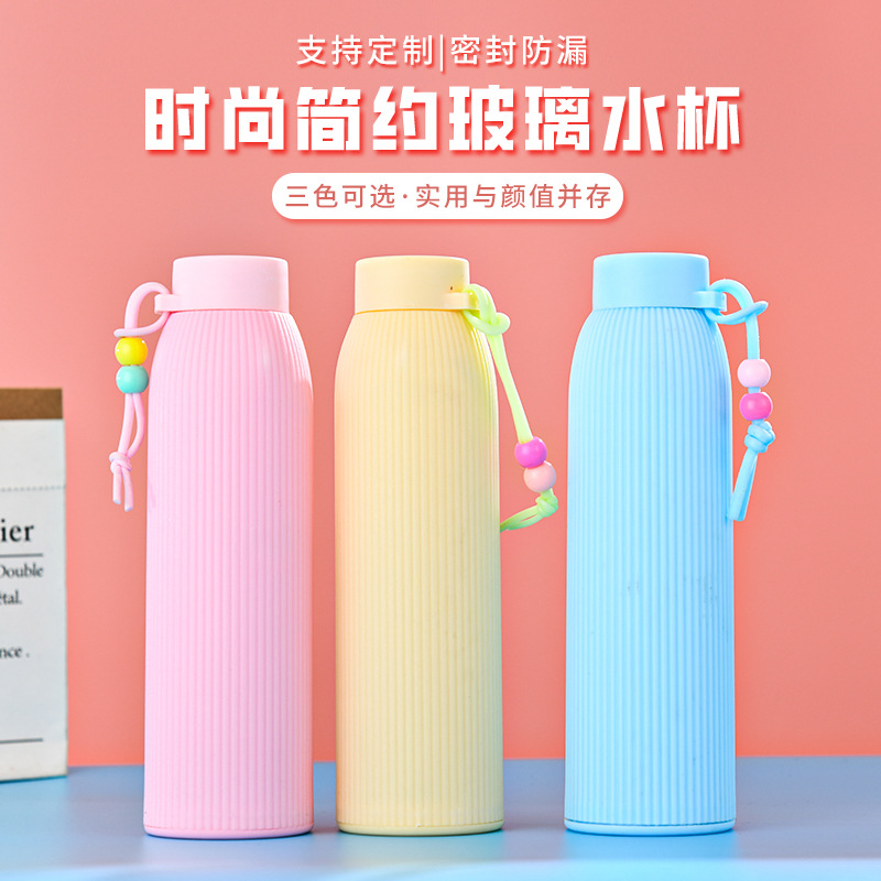 ポータブルクリエイティブギフト広告カップインターネット有名人のガラスウォーターカップストライプガラスカッププラスチックガラスカップ小さな新鮮なポータブルウォーターカップ