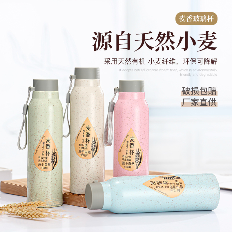 卸売小麦香りカップ広告カップ彫刻ロゴガラス二層小麦わらイベントウォーターカップカバー付きプチギフト
