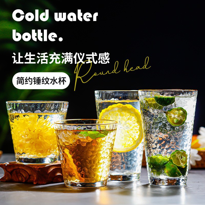 金縁ガラスハンマーパターンカップクリエイティブジュースドリンクカップインターネット有名人レストランカップフルーツティーミルクティーバーカップ卸売