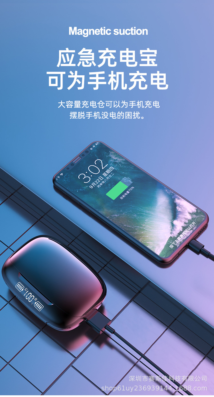 国境を越えた新型5.4無線入耳式知能デジタル表示伸縮片耳式長尺航続ネクタイ式イヤホンK75