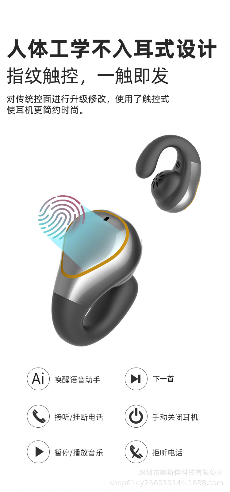 500小时续航4喇叭重低音开放式蓝牙耳机超长续航ai智能声控挂耳式