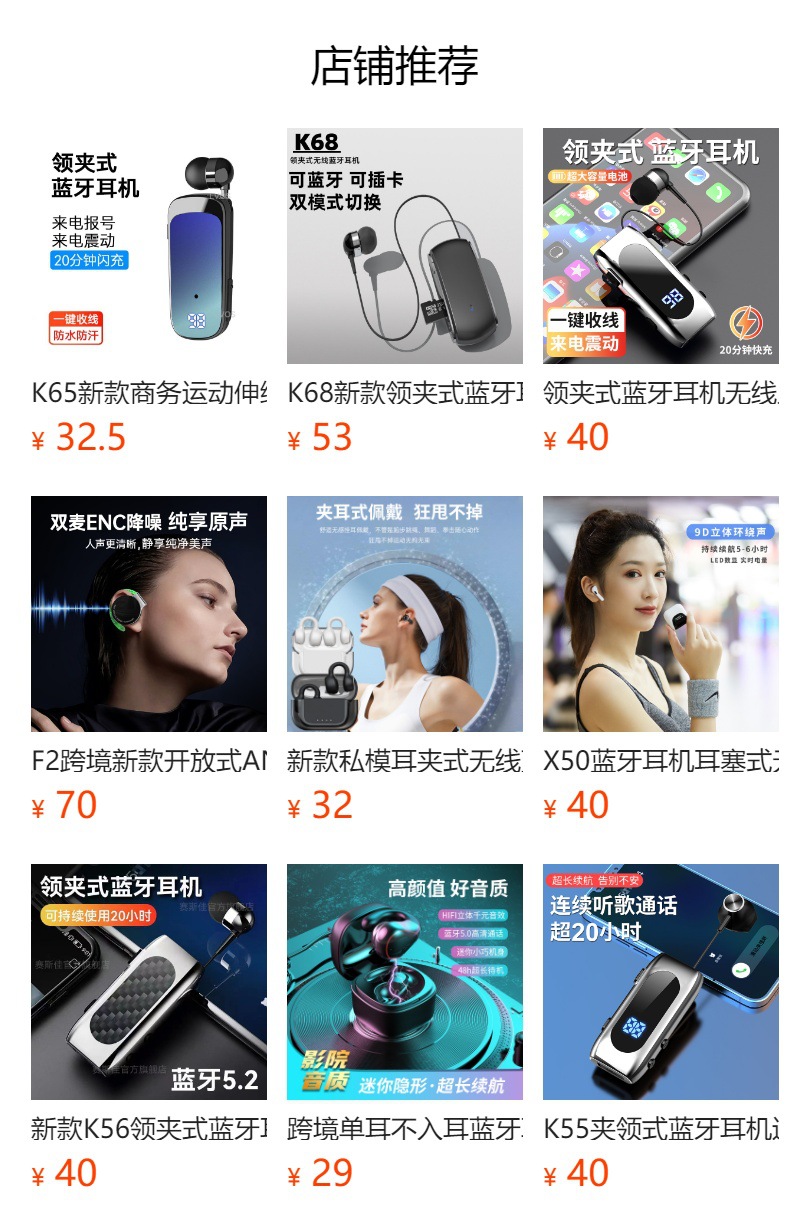 K65新型ビジネススポーツ伸縮ケーブルクリップ式bluetoothイヤホン長待機無線イヤホンクロスボーダー
