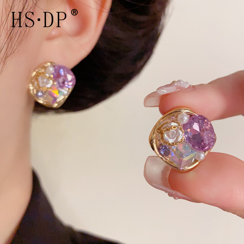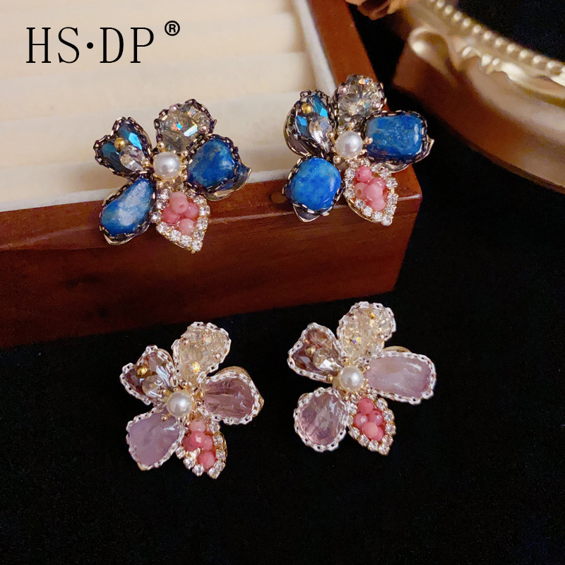 s925 シルバー針ファッションデザイン手作りクリスタル花びら菱形イヤリングニッチライト高級甘い多用途イヤリング