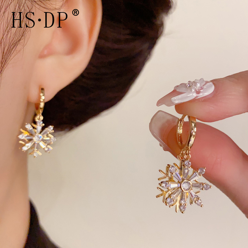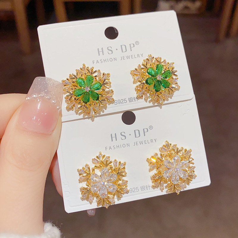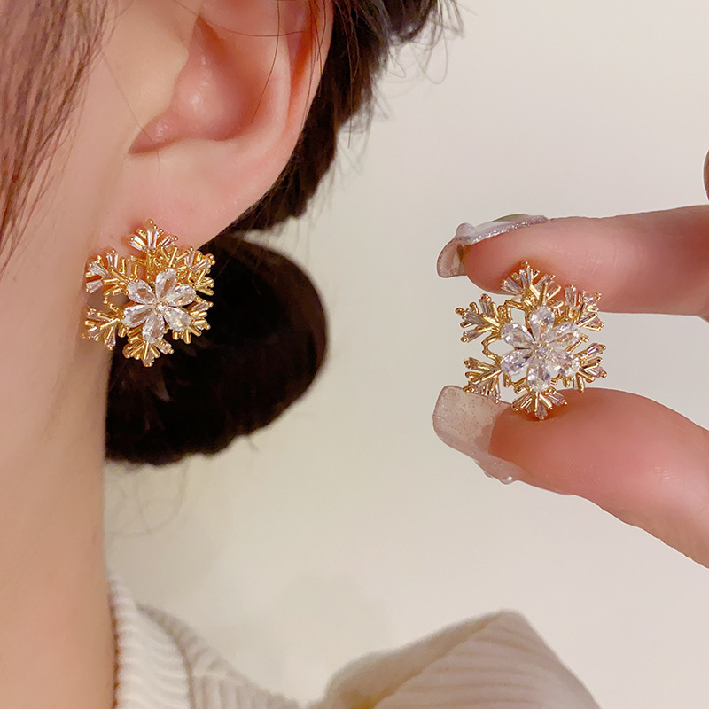 クリスマスジルコン二重雪花流蘇耳ボタン洗練されたファッション個性百合超フラッシュ高級感イヤリング卸売り