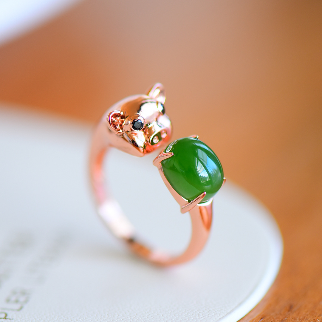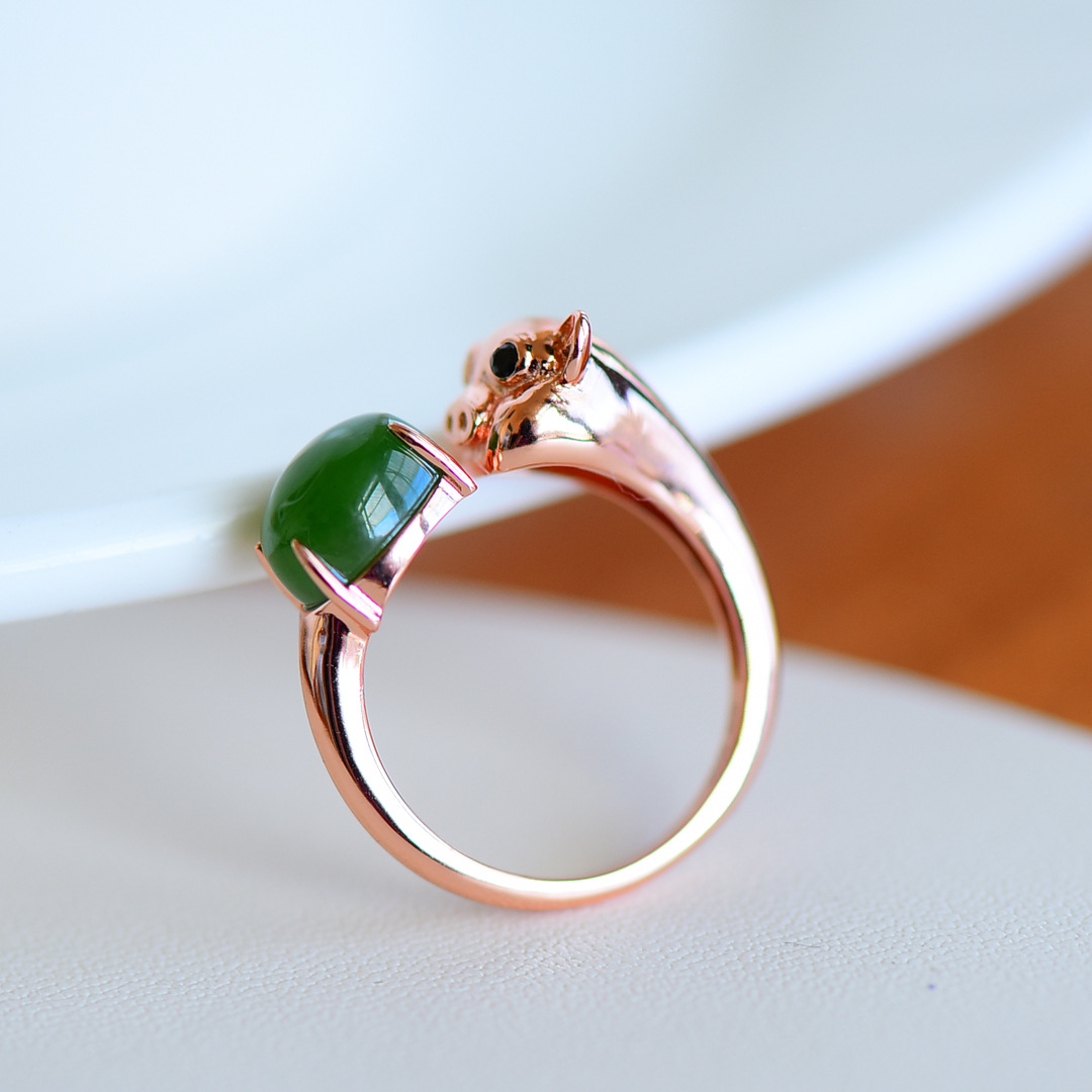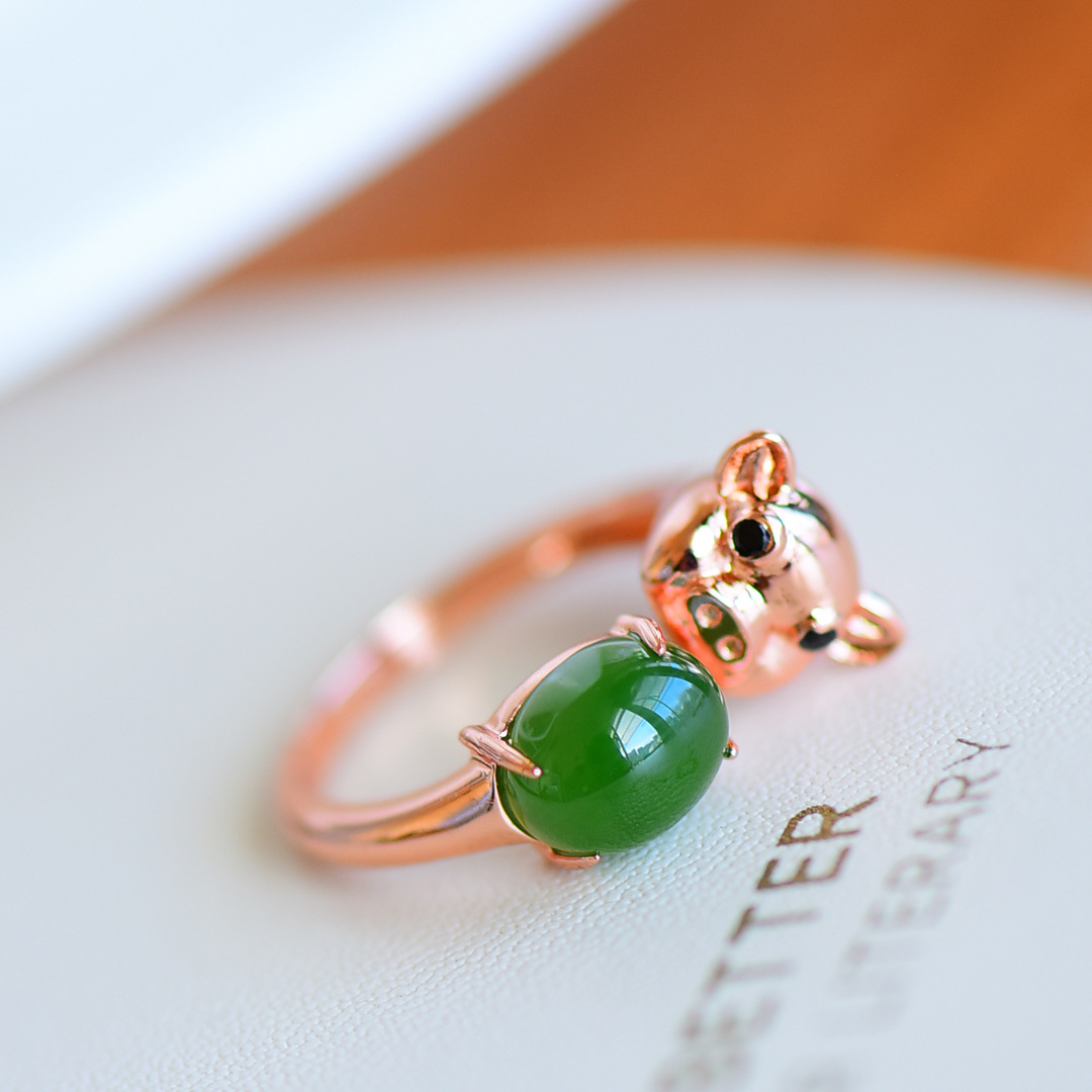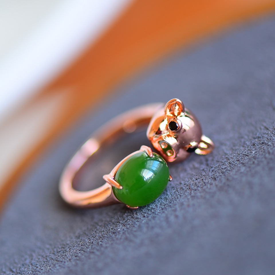 S925銀は和田玉碧玉の指輪をはめ込んでいます。