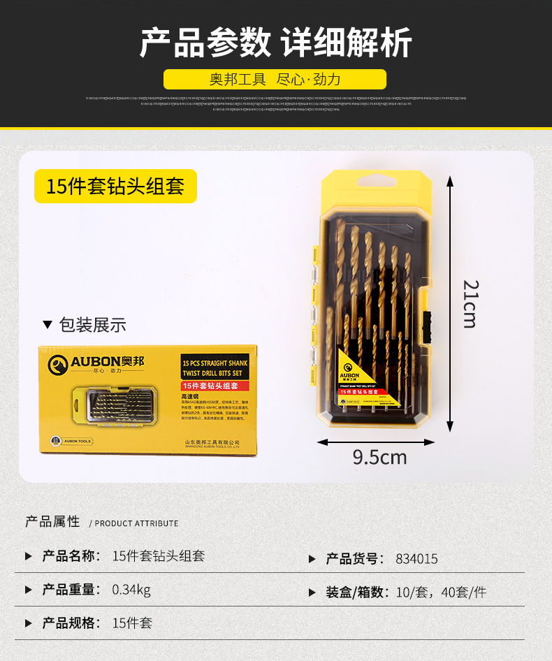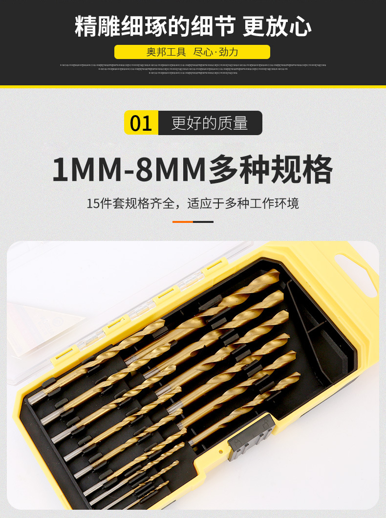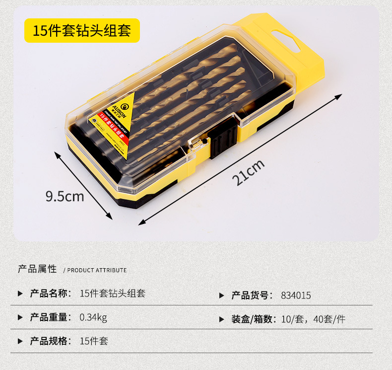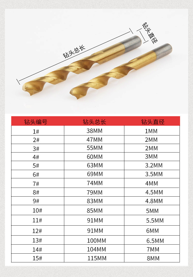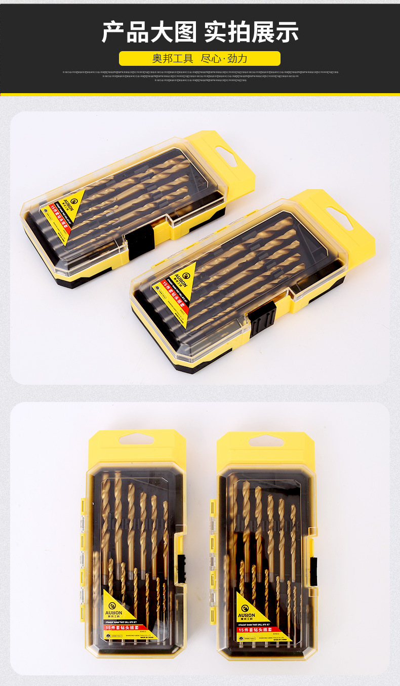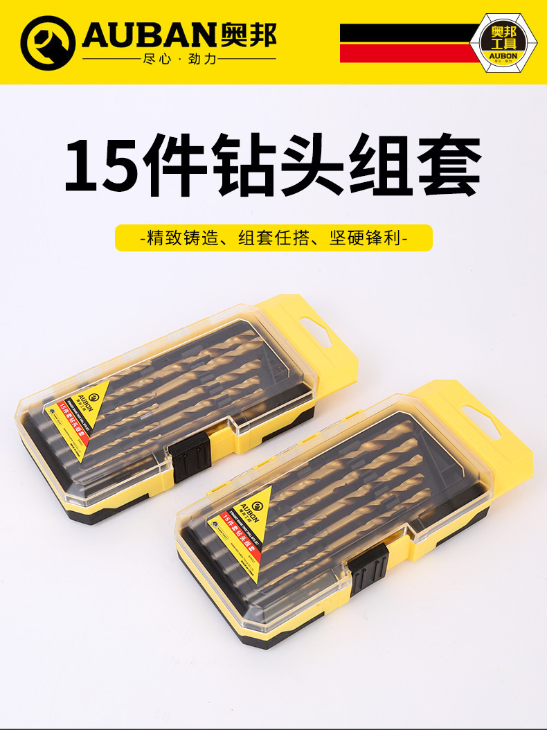 ドリルセット15点麻花ドリルセット高速鋼コバルトドリル二頭ドリル全磨製ドリルセット
