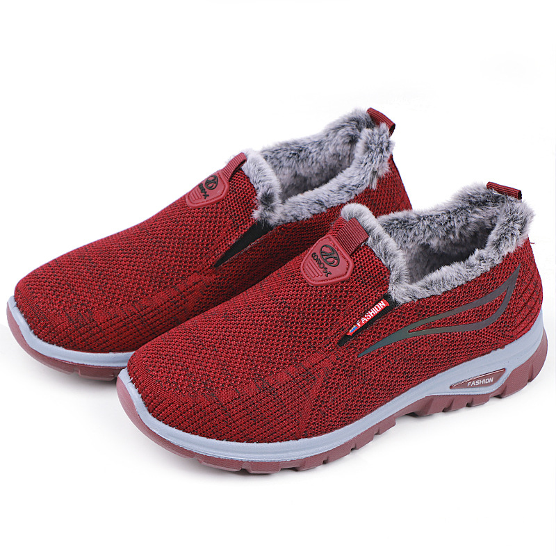 中高年の女性の綿の靴は足をかぶせて保温します。