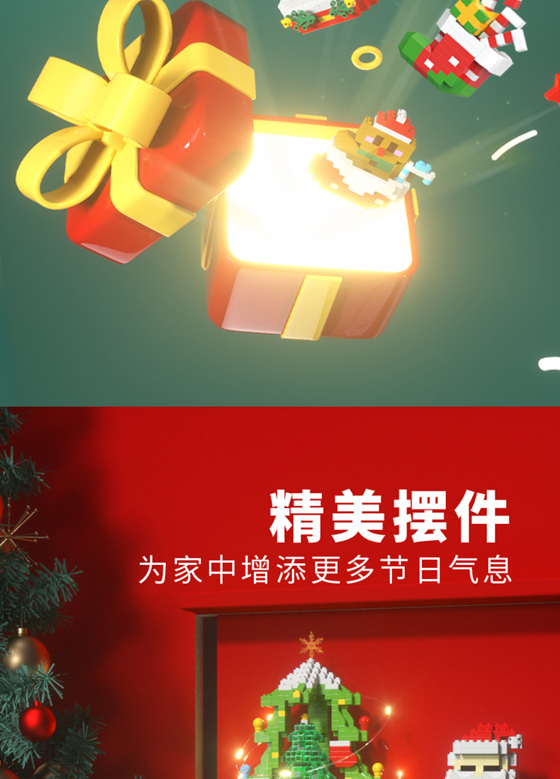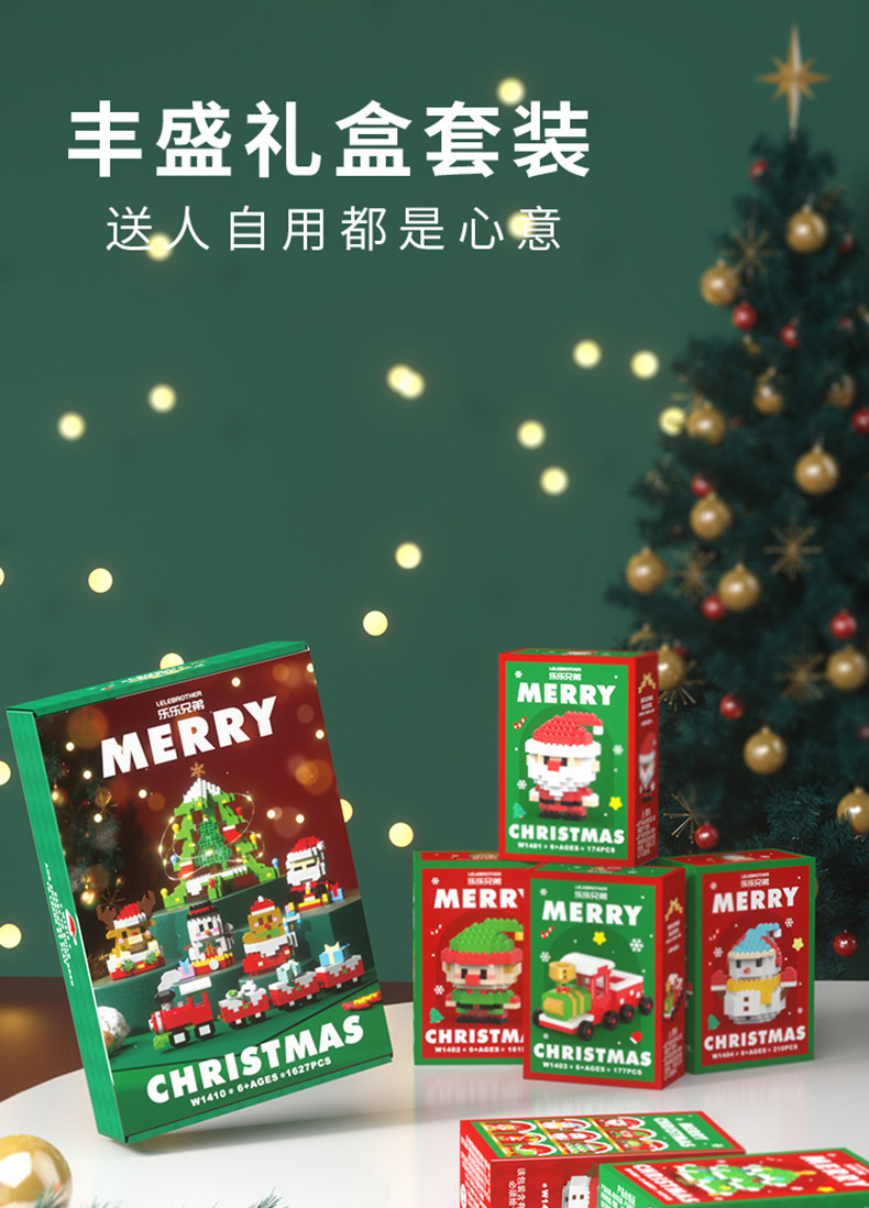 乐乐兄弟圣诞节积木圣诞老人拼装兼容乐高积木玩具摆件圣诞树模型