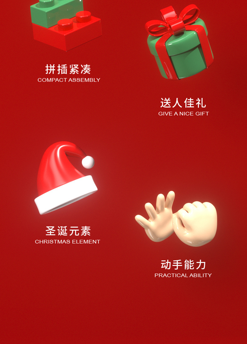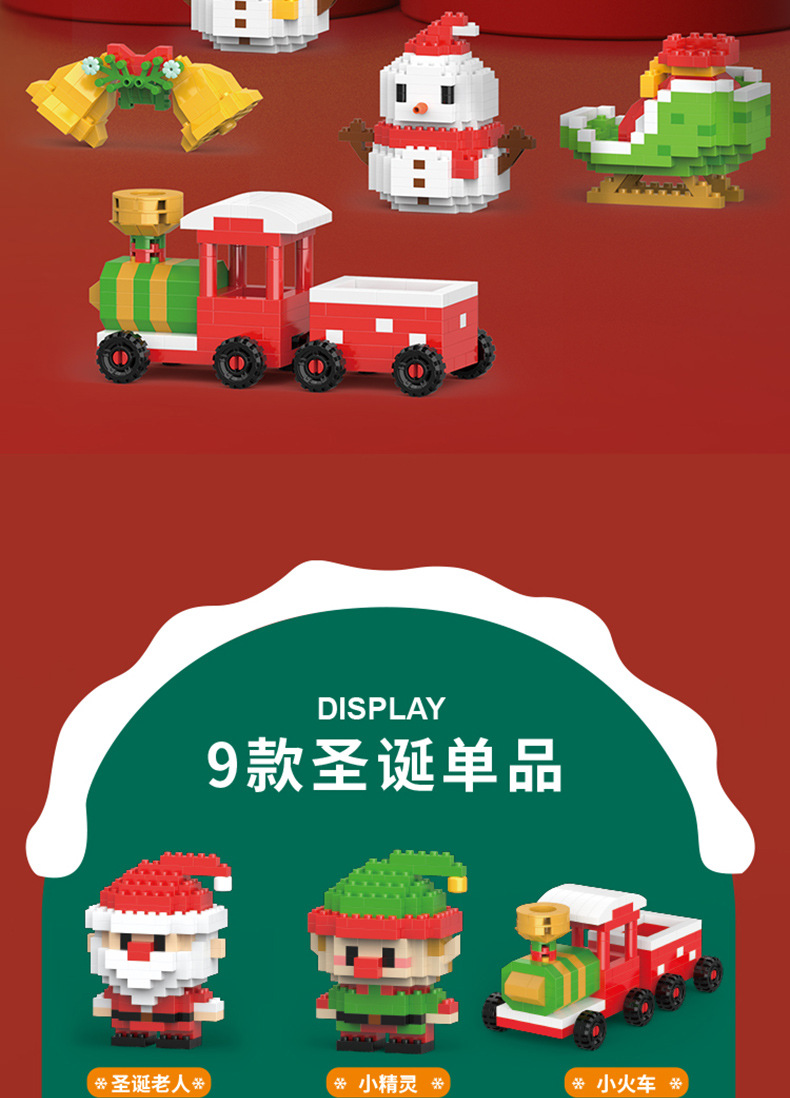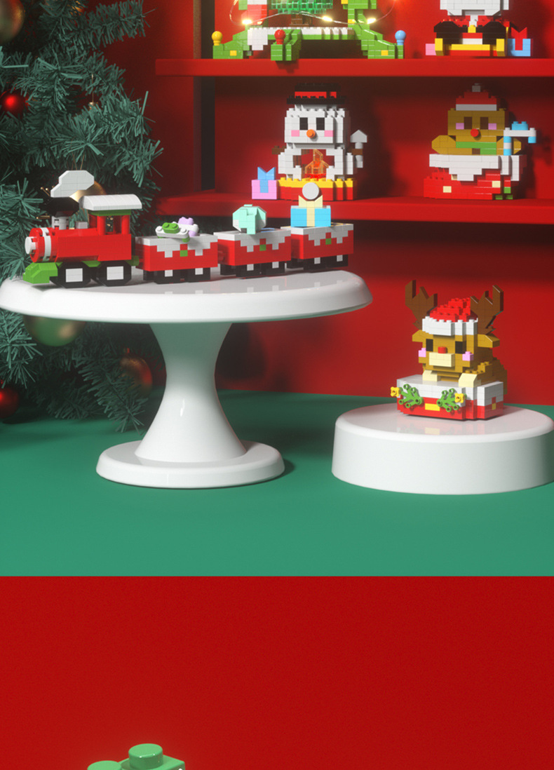 クリスマス積み木小列車サンタクロース模型小ヘラジカ微ドリル顆粒学生プレゼントクロスボーダーW1401