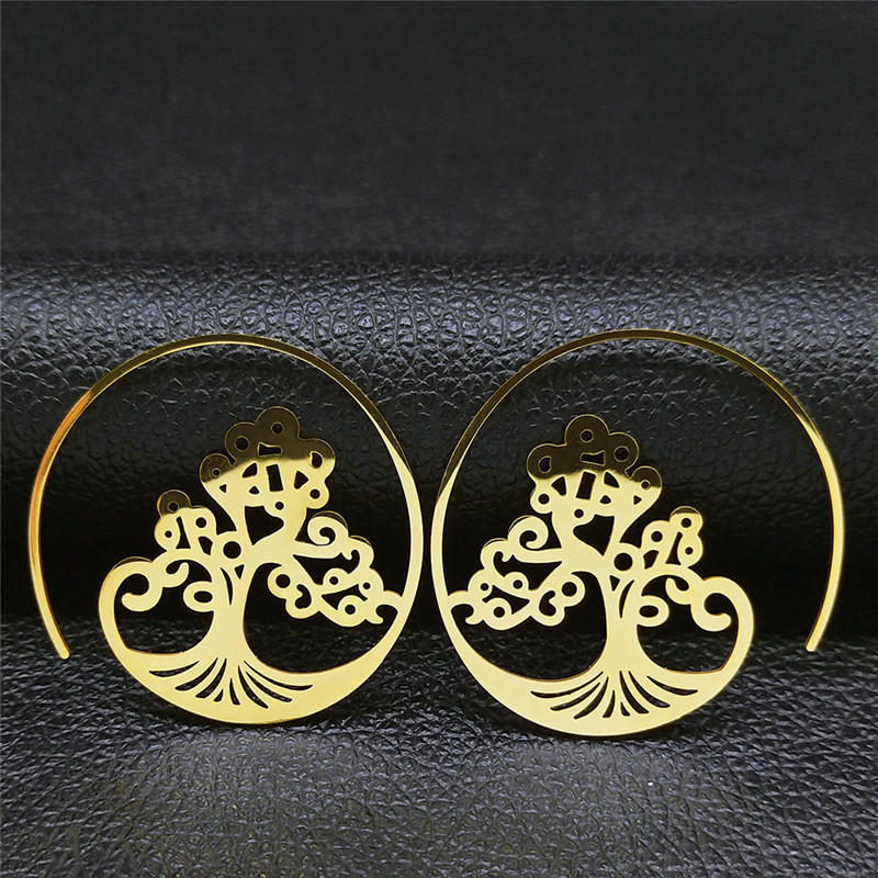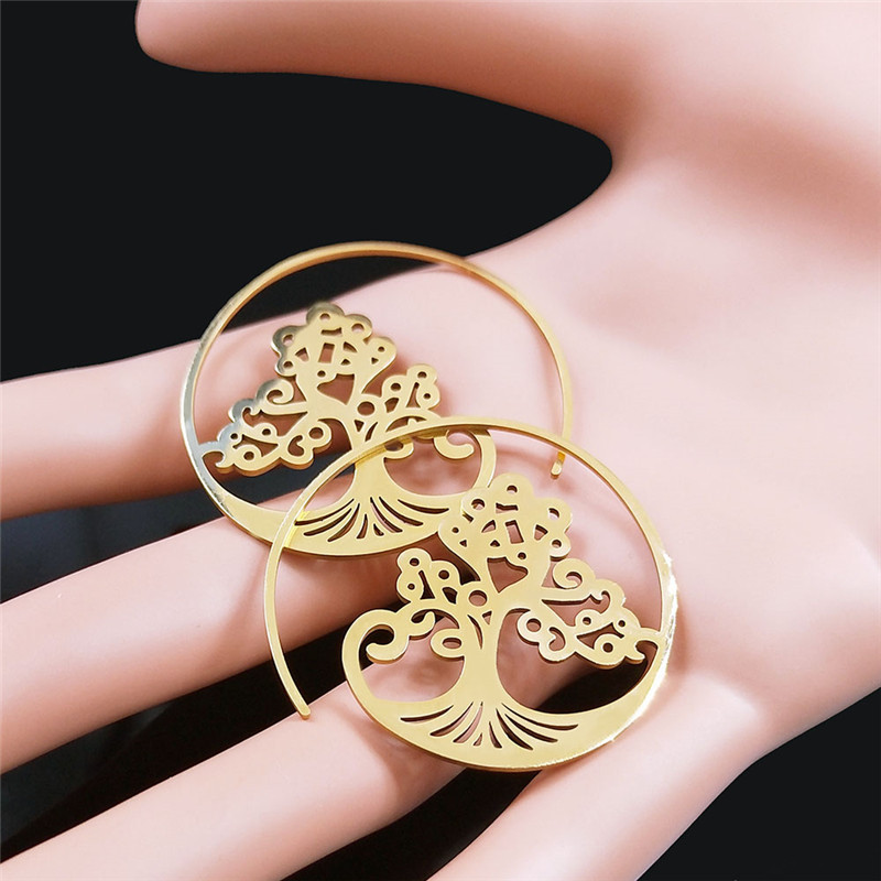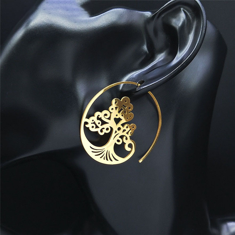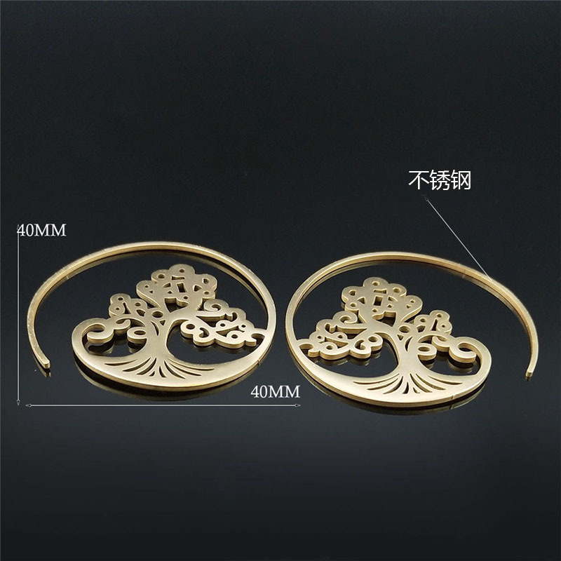 国境を越えた人気民族風耳飾りボヘミアン透かし彫り花イヤリングファッション幾何学ステンレスレトロイヤリング