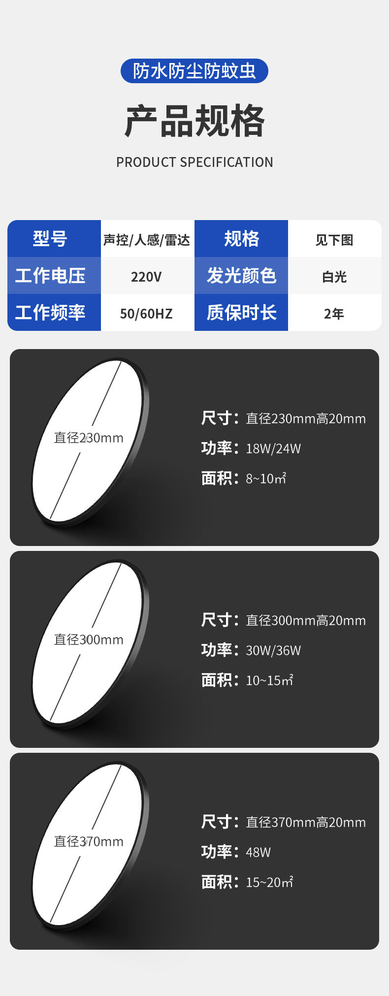 音と光/レーダー/赤外線シーリングランプ 0.6