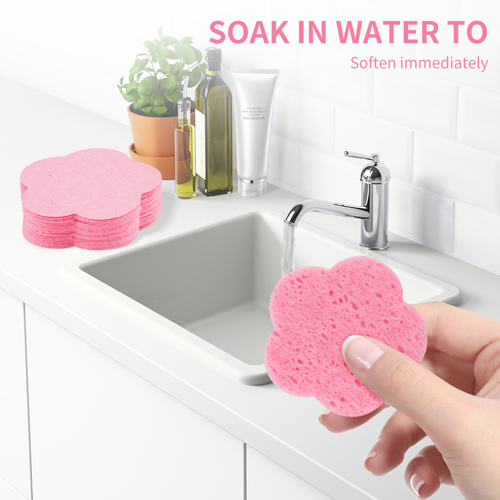 国境を越えたミルクティー店の連名型両面皿洗い綿天然圧縮印刷木質綿分解可能なアイデアスポンジ拭き