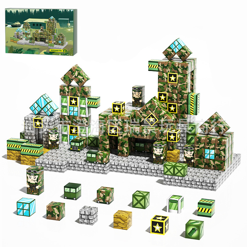 軍事建築磁気組み立てビルディングブロック磁気ブロック組み立て磁気ミニワールドセットシーンクロスボーダーホットセール