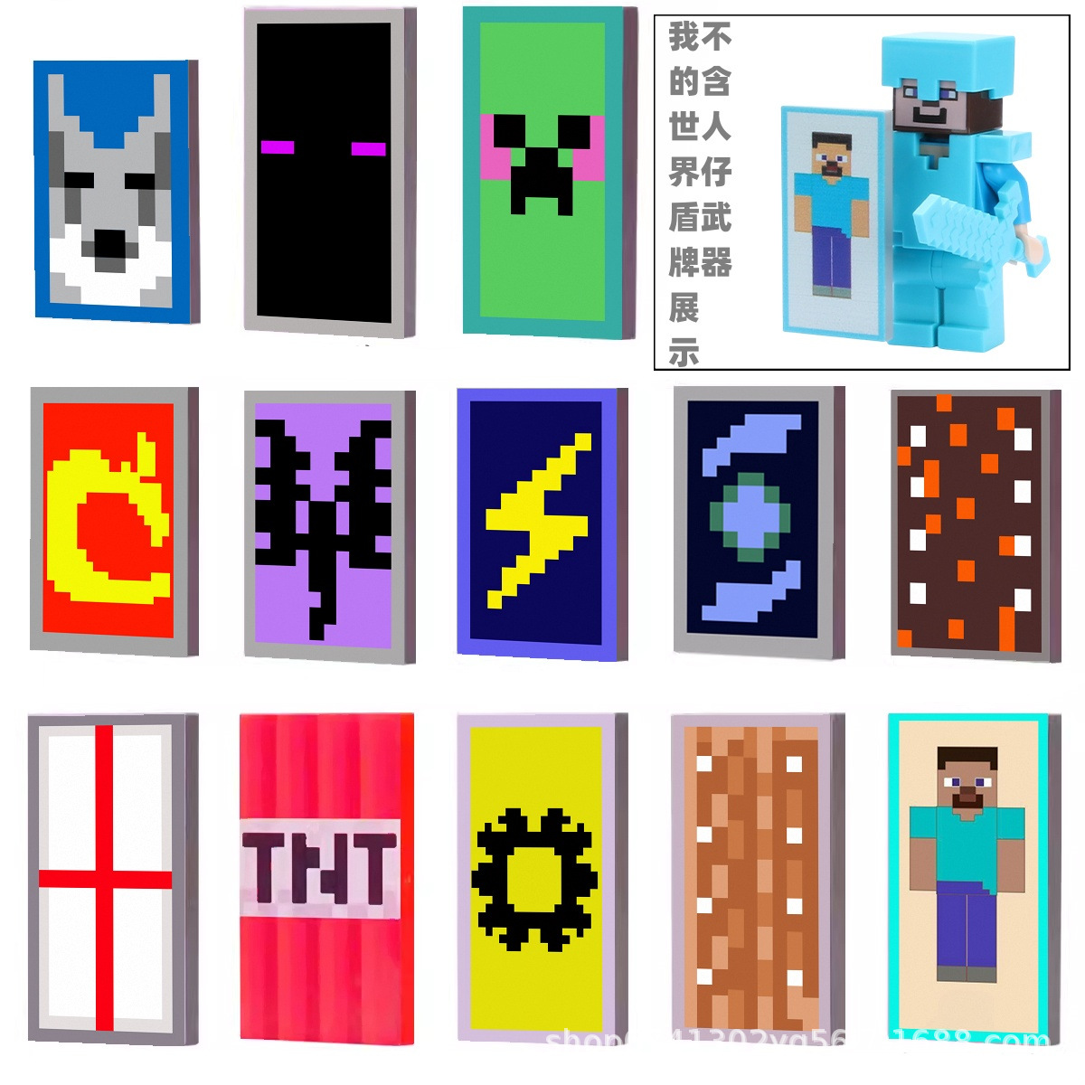 跨境我的积木世界史蒂夫骑士人仔武器盾牌旗帜配件装备包拼装玩具