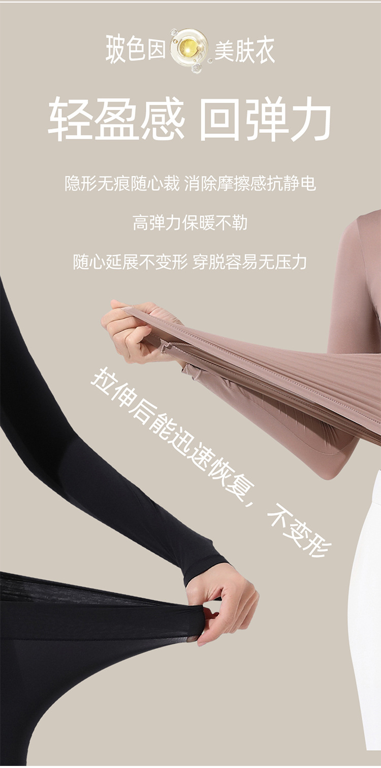 22100堆堆领高领玻尿酸美肤衣套装高弹长袖无痕保暖内衣女打底衫