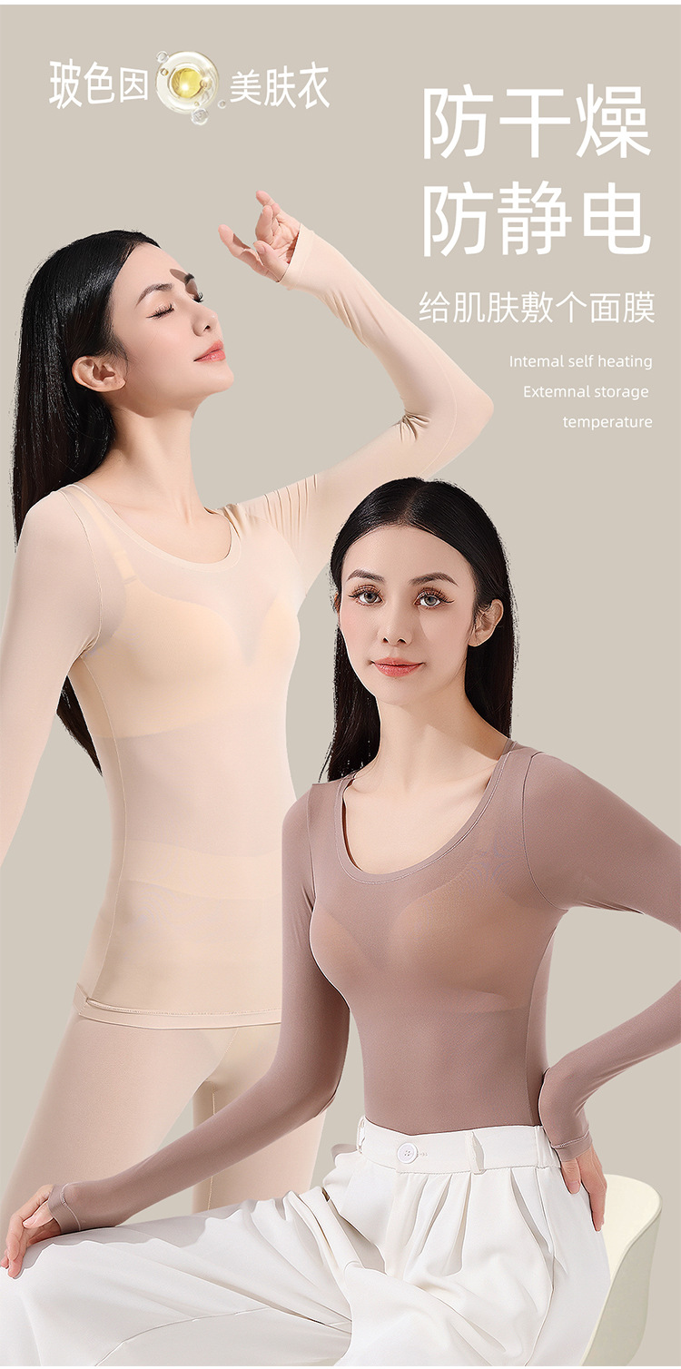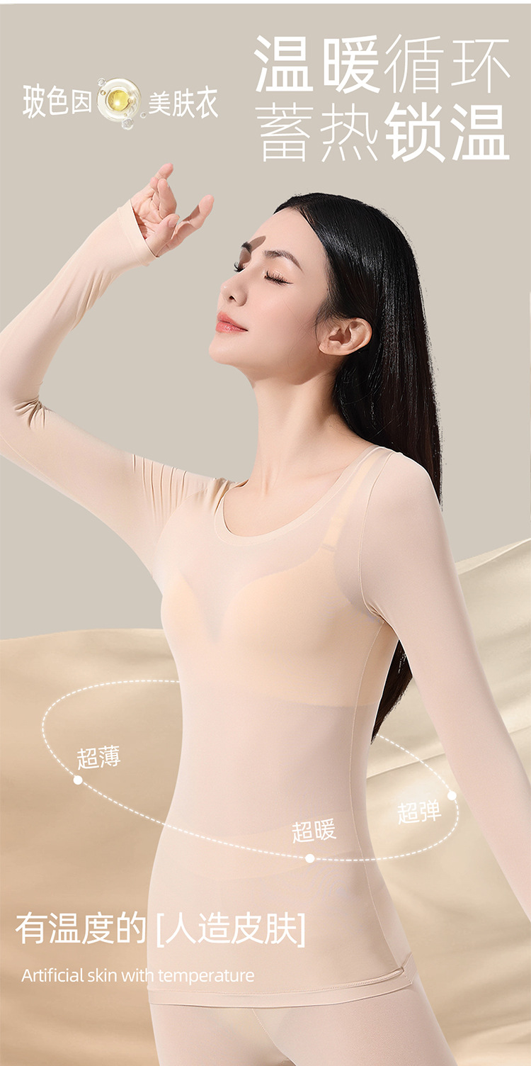 玻尿酸美肤衣超薄款肌底衣秋冬保暖内衣套装女士修身打底秋衣秋裤