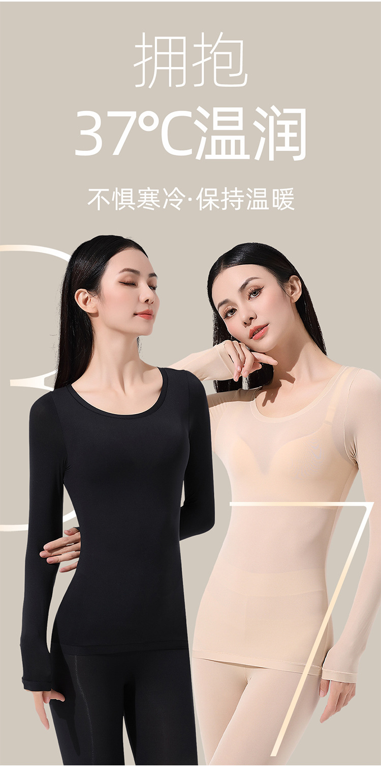 37度恒温超薄発熱保温下着女性秋衣秋ズボンセット熱エネルギー肌底美肌服底シャツ