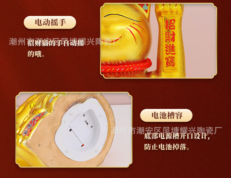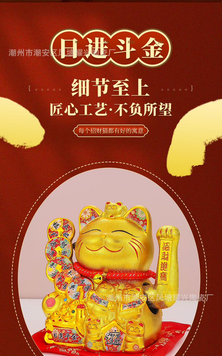 特大号土豪金陶磁器招財揺り手猫贈答品店開業プレゼント客間装飾揺り手猫置物